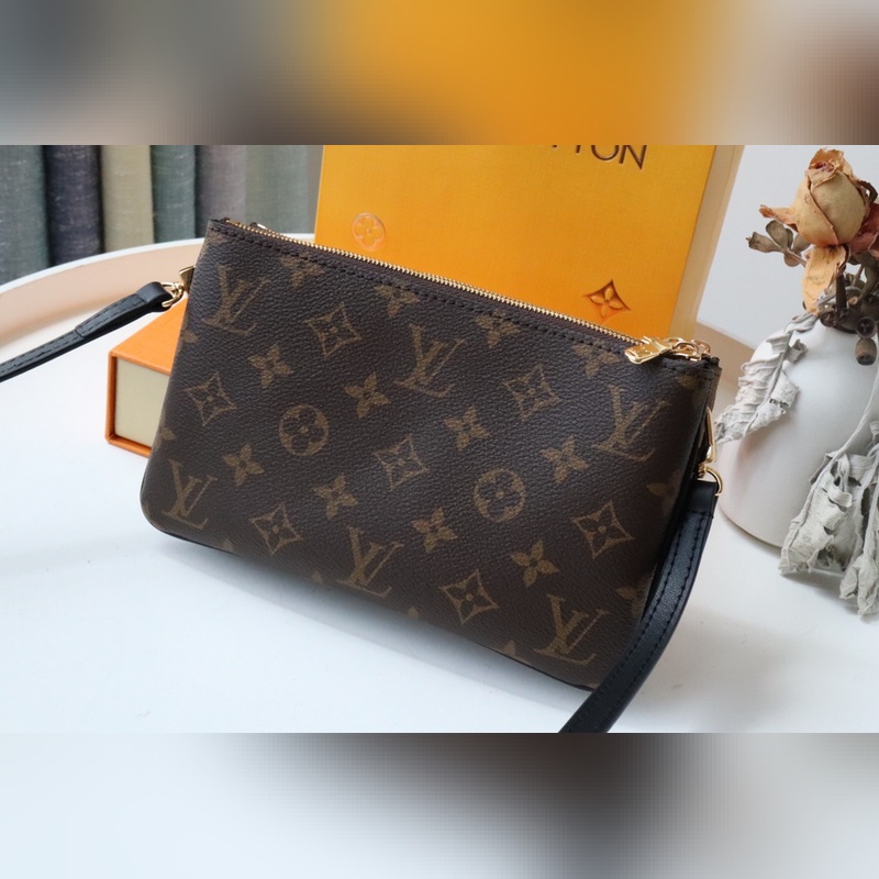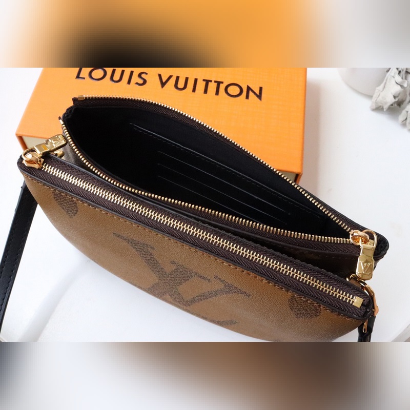 LV 모델 번호: M69203 더블 지퍼 파우치 핸드백 모노그램 캔버스