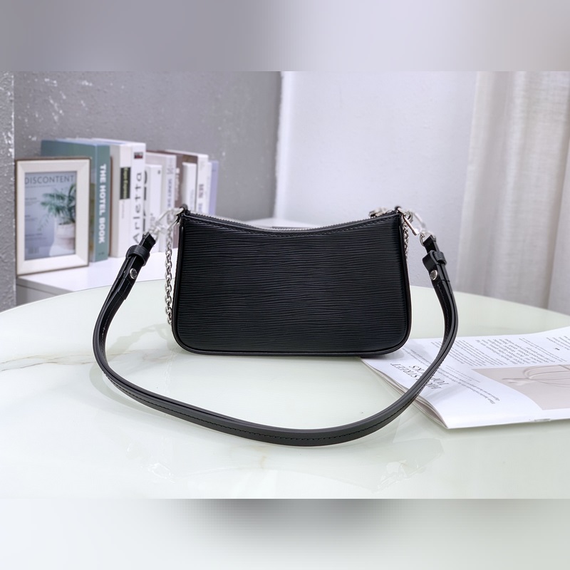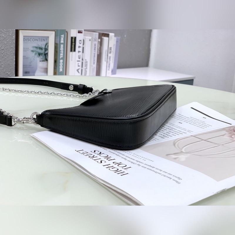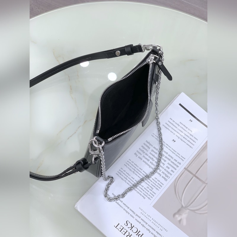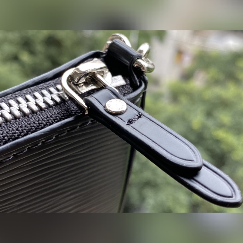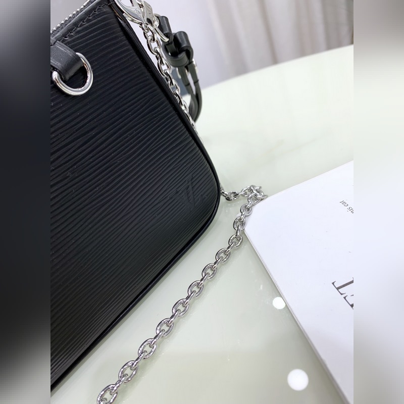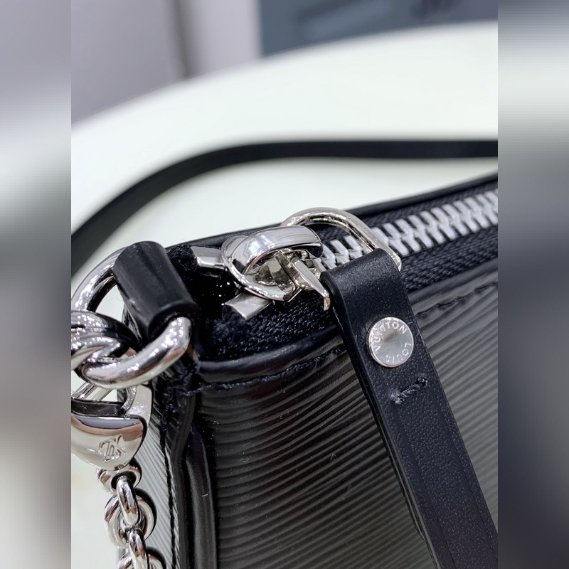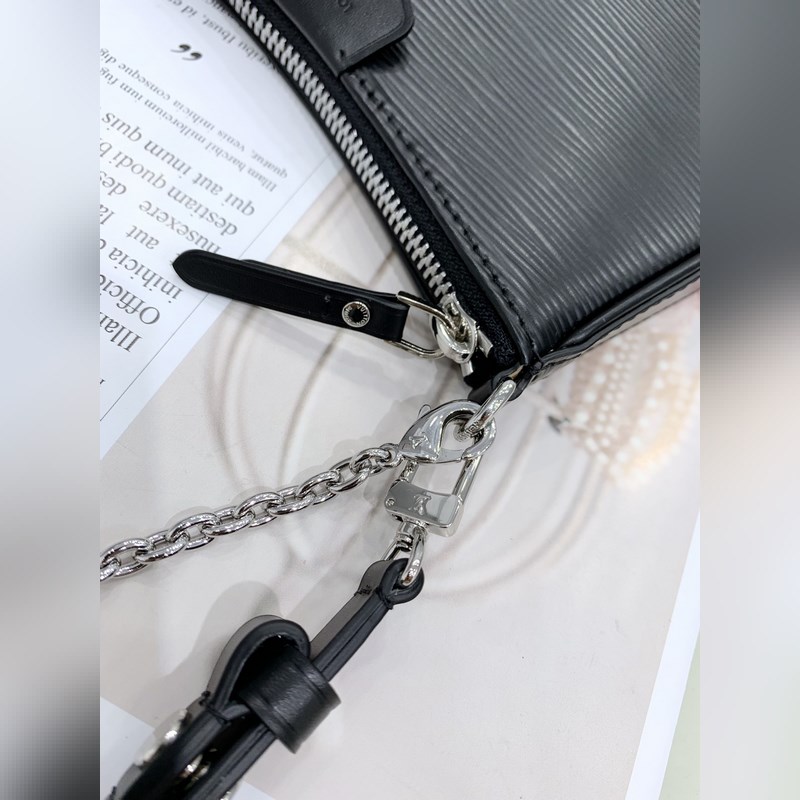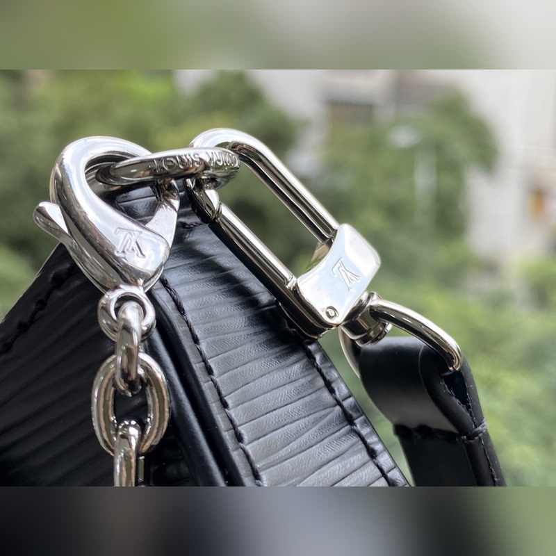 LV 아이템 번호 M80471 블랙 스트랩 핸드백 특징 은은하게 엠보싱 처리된 글자가 들어간 에피 그레인 가죽 일상 용품을 보관할 수 있는 깔끔한 라인 가방을 고정할 수 있는 탈착식 체인과 D링. 조절 가능한 어깨 끈을 부착하여 어깨에 메거나 크로스 바디로 메는 것도 가능합니다. 크기: 19 x 11.5 x 3cm 항목 번호: SG9618920 RYX9618880