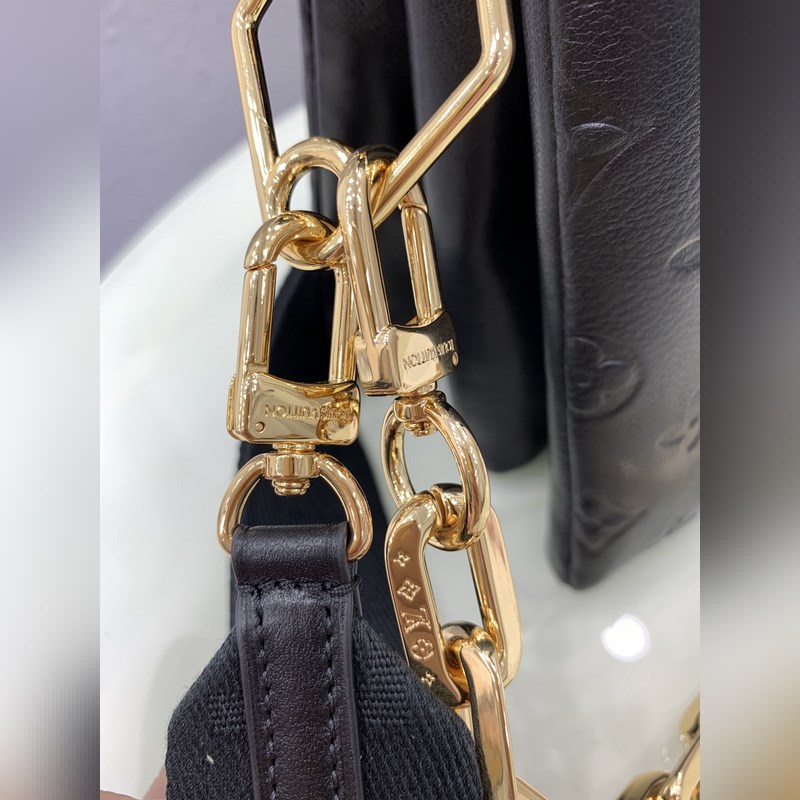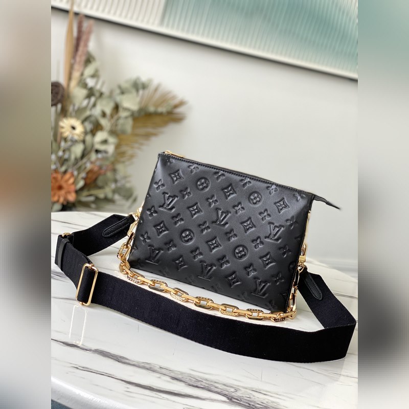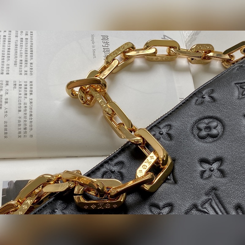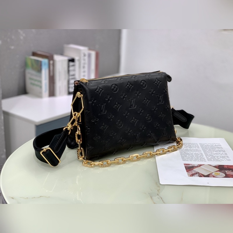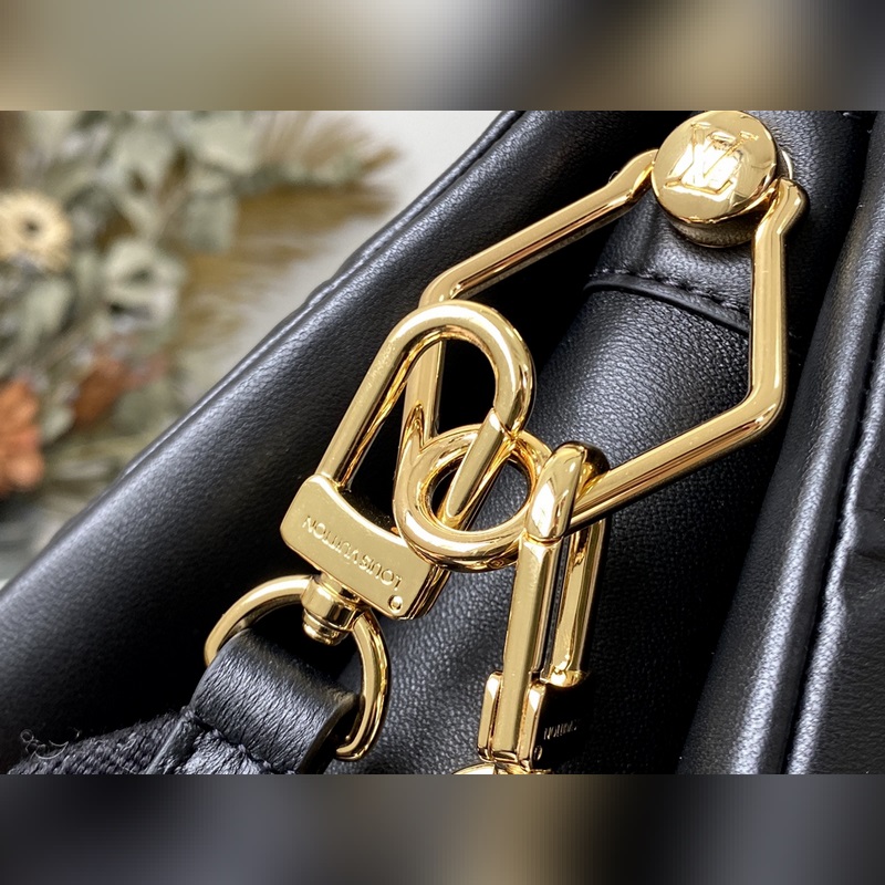 LV 상품 번호: M57790 검은색 쿠썽 트럼펫 가방 2021년 봄/여름 패션쇼에서 큰 인기를 끌었습니다. 모노그램이 양각으로 새겨진 폭신폭신한 양가죽 쿠션이 미니멀리스트 디자인에 날카로운 느낌을 더해줍니다. 어깨끈을 이용해 크로스바디로 착용하거나 체인 백으로 착용하거나 팔 아래에 매달아 휴대할 수 있습니다. 크기: 26 x 20 x 12cm 항목 번호: SG96181450 RYX96181050 9618640
