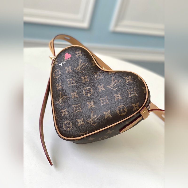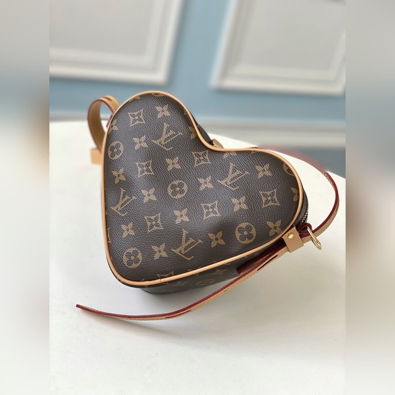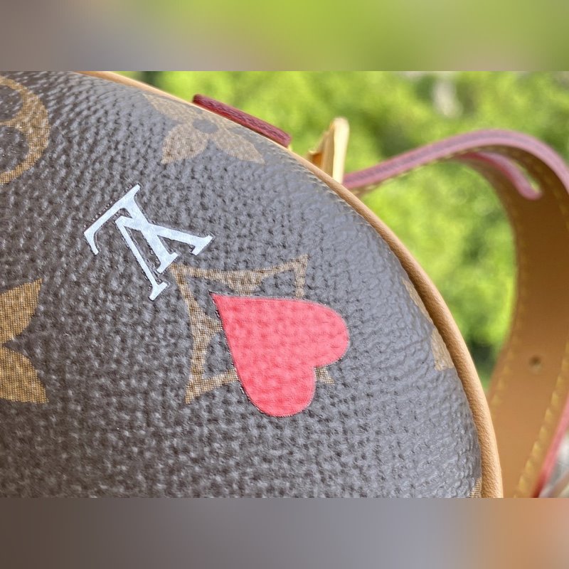 LV 모델 번호: M57456 커 핸드백 모노그램 캔버스로 제작되었으며 왼쪽 상단 모서리에 니콜라 제스키에르가 그린 빨간 하트 모양의 윤곽선이 특징입니다. 길이 조절이 가능한 가죽 숄더 스트랩으로 어깨에 메거나 크로스 바디로 메는 등 다양한 착용이 가능합니다. 크기: 22 x 16 x 6cm 품번: SG96181050