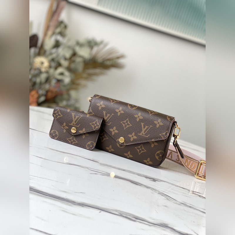 LV 아이템 번호: M80091 새로운 핑크 3피스 세트 멀티 포셰트 펠리시 3-in-1 메인 가방의 마작 가방은 가장 큰 아이폰을 넣을 수 있습니다. 내부에는 하나의 수납공간과 세 개의 카드 슬롯이 있습니다. 작은 카드 홀더는 분리하여 다른 가방에 따로 넣거나 원하는 곳에 걸어 둘 수 있습니다. 조절 가능한 넓은 어깨끈은 어깨에 메거나 크로스 바디로 메는 등 실용성과 패션을 완벽하게 결합한 디자인입니다. 크기: 17x9.6x3.5cm 아이템 번호: SG9618930