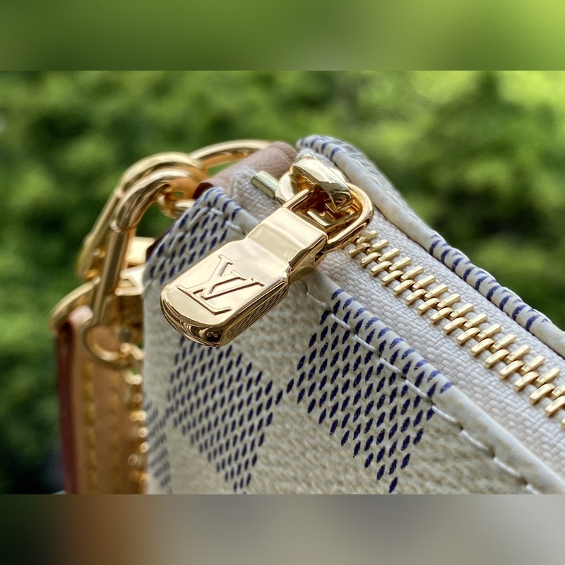 LV 아이템 번호: N55214 EVA 가방 유명 모델인 에바 헤르치고바의 이름을 딴 이 가방은 부드러운 다미에 캔버스로 만들어졌으며 눈에 띄는 인벤튀르(Inventeur) 명판이 특징입니다. 손으로 들거나 어깨에 메거나 몸에 걸칠 수 있습니다. 크기: 25x13x4cm 항목 번호: SG9618850 9618590