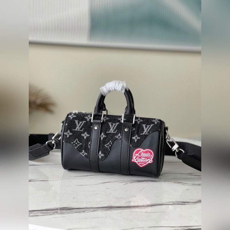 LV 상품 번호: M81010: 포켓형 Keepall 가방 2022년 초봄 클래식한 Keepall 핸드백의 포켓 버전을 만나보세요. 일본 스트리트웨어 디자이너 니고의 모노그램 드립 요소를 만나보세요: 상징적인 모노그램 패턴이 캐주얼한 데님 위에 펼쳐져 있고 부드러운 타우리옹 소가죽과 조화를 이루며 하트 로고가 밝은 색상을 더합니다. 크기: 21 x 12 x 9cm 항목 번호: SG96181250 9618970