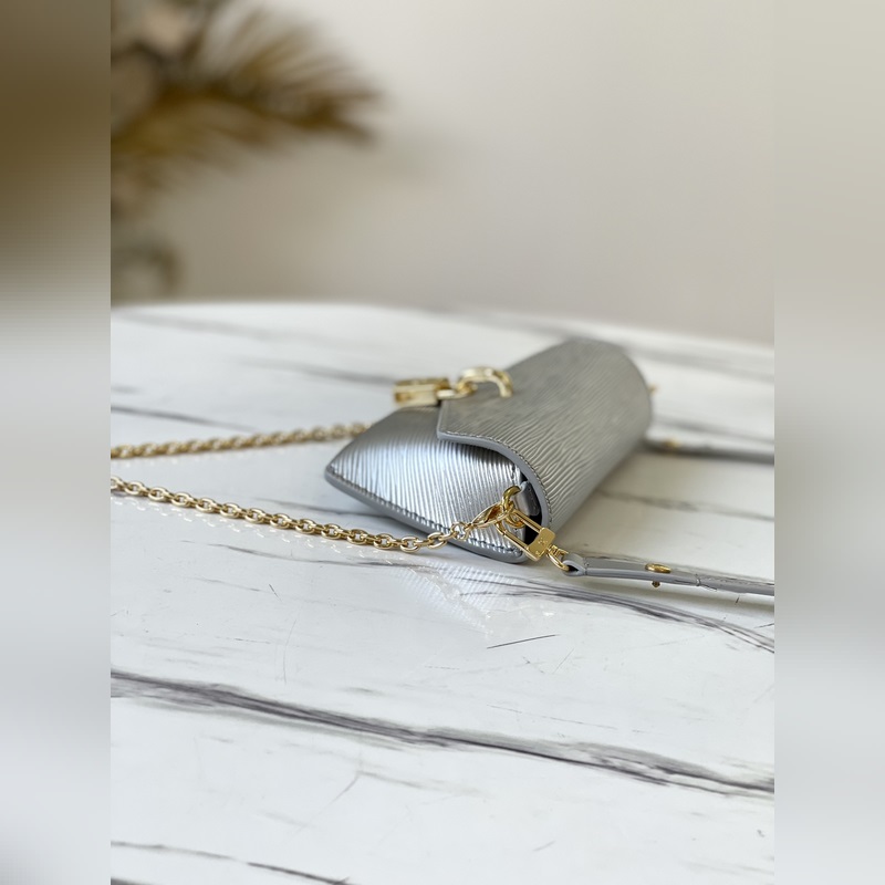 LV 모델 번호: M80819 스트랩 핸드백에 자물쇠 에피 가죽의 특징인 그레인 무늬가 있고 브랜드 자물쇠로 장식된 자석 걸쇠로 소지품을 안전하게 보관할 수 있습니다. 탈착식 체인과 탈착식 및 길이 조절이 가능한 어깨 끈으로 다양한 운반 옵션을 제공하며 뒷면에 끈 고리가 있습니다. 크기: 19 x 11 x 3cm 품번: SG96181050