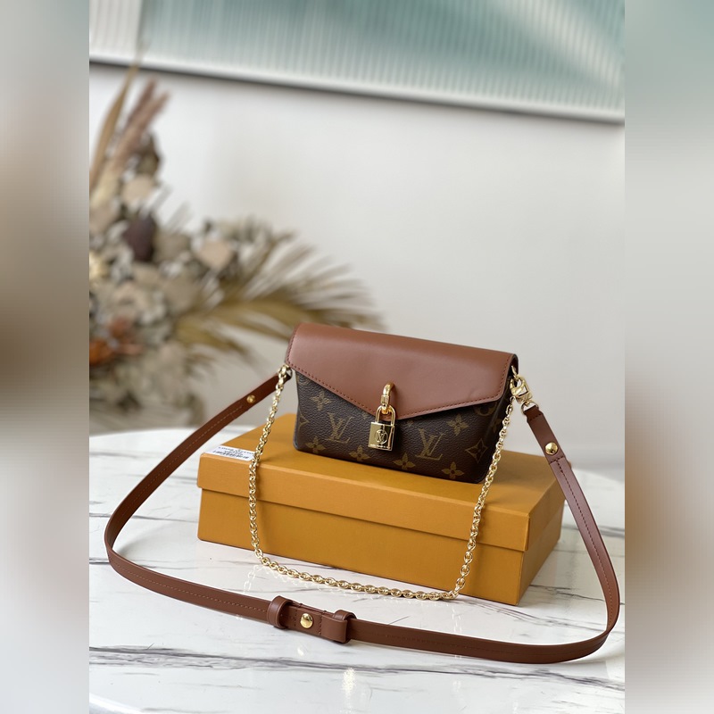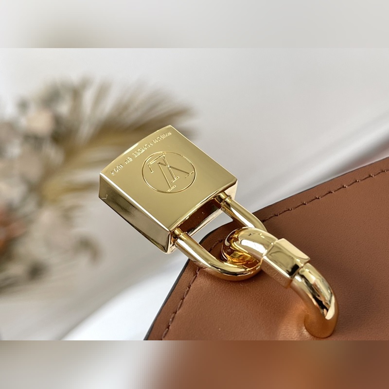 LV 모델 번호: M80763 스트랩 핸드백에 달린 캐러멜색 자물쇠 클