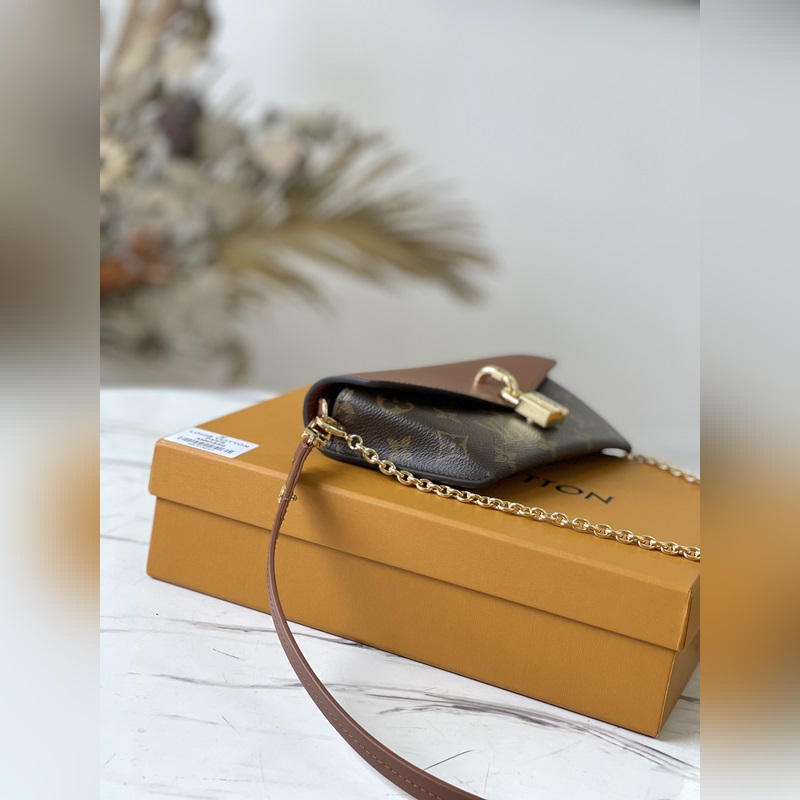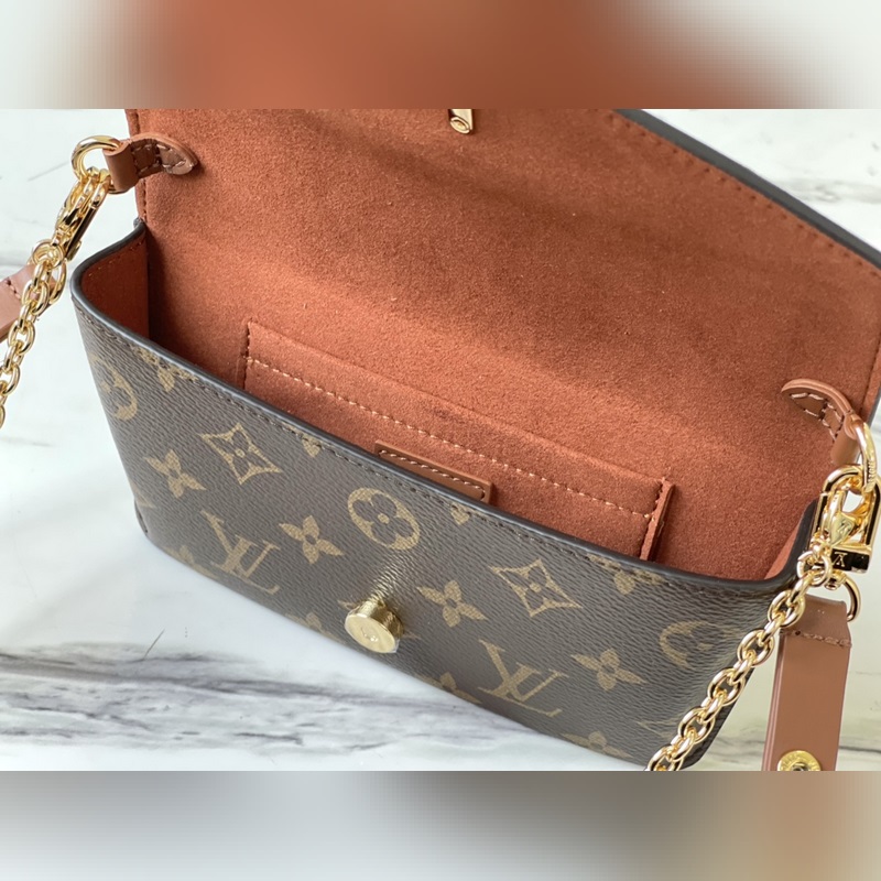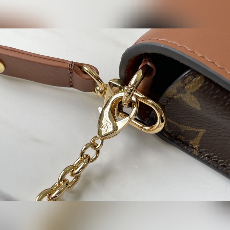 LV 모델 번호: M80763 스트랩 핸드백에 달린 캐러멜색 자물쇠 클래식한 모노그램 캔버스에 부드러운 소가죽 플랩을 더하고 뒷면에 끈 고리를 달았습니다. 자물쇠가 달린 자석 걸쇠가 안전하게 잠글 수 있도록 해주고 탈착식 체인과 탈착식 어깨끈을 사용하면 어깨에 메거나 크로스 바디로 메는 것도 가능합니다. 크기: 19 x 11 x 3cm 아이템 번호: SG9618950