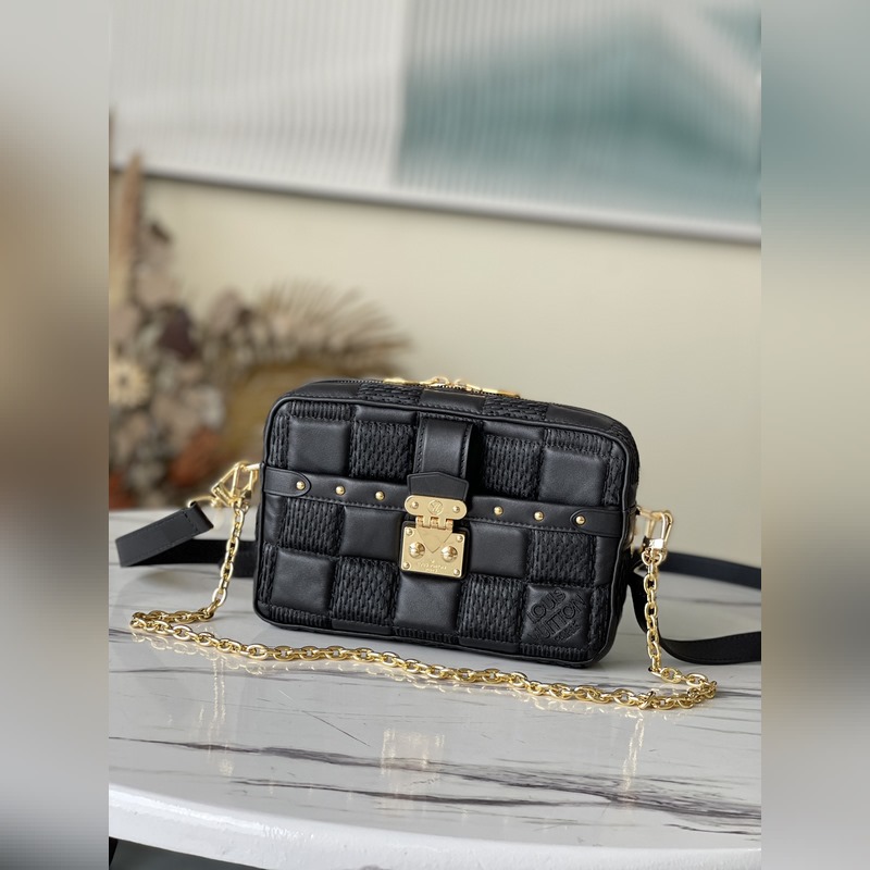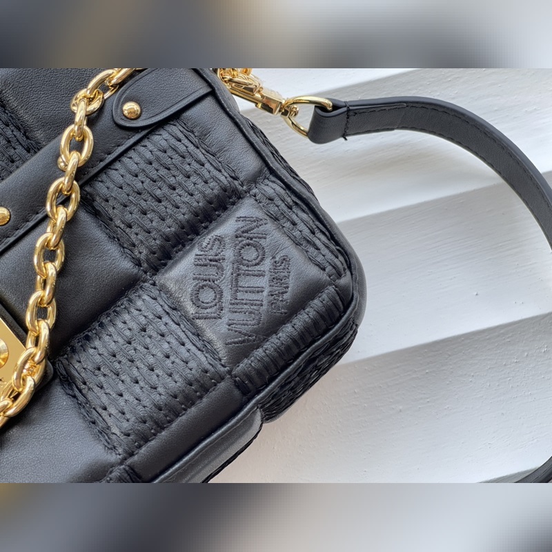 LV 아이템 번호: M59116 블랙 트로카 가방 안감이 있는 양가죽에 작은 다미에 체크 무늬를 더한 다미에 퀼팅 S자형 잠금쇠로 마감하여 스마트하고 정사각형 모양을 완성했습니다. 손에 들거나 어깨에 메고 어디든 가지고 다닐 수 있으며 낮과 밤 모두 빛을 발합니다. 크기: 22 x 15 x 6cm 아이템 번호: SG96181450
