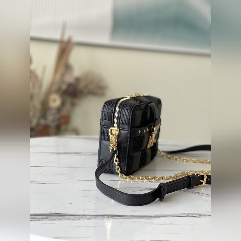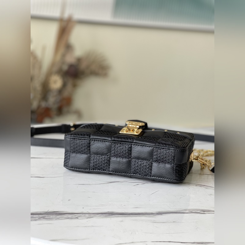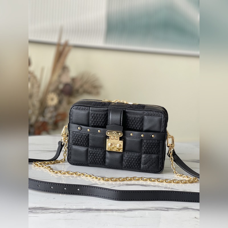 LV 아이템 번호 M59116 블랙 트로카 소형 가방 양가죽 안감과 큰 다미에 체크 무늬로 장식된 다미에 퀼팅 그리고 컴팩트한 사각형 모양에 세련미를 더하는 S자형 잠금장치. 손으로 들고 다니거나 어깨에 메고 다니거나 어디든 가지고 다닐 수 있으며 낮이든 밤이든 멋지게 보입니다. 크기: 22 x 15 x 6cm 아이템 번호: SG96181350