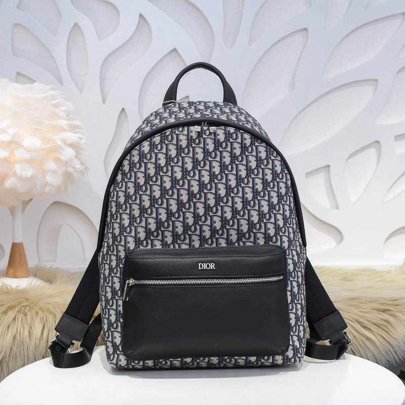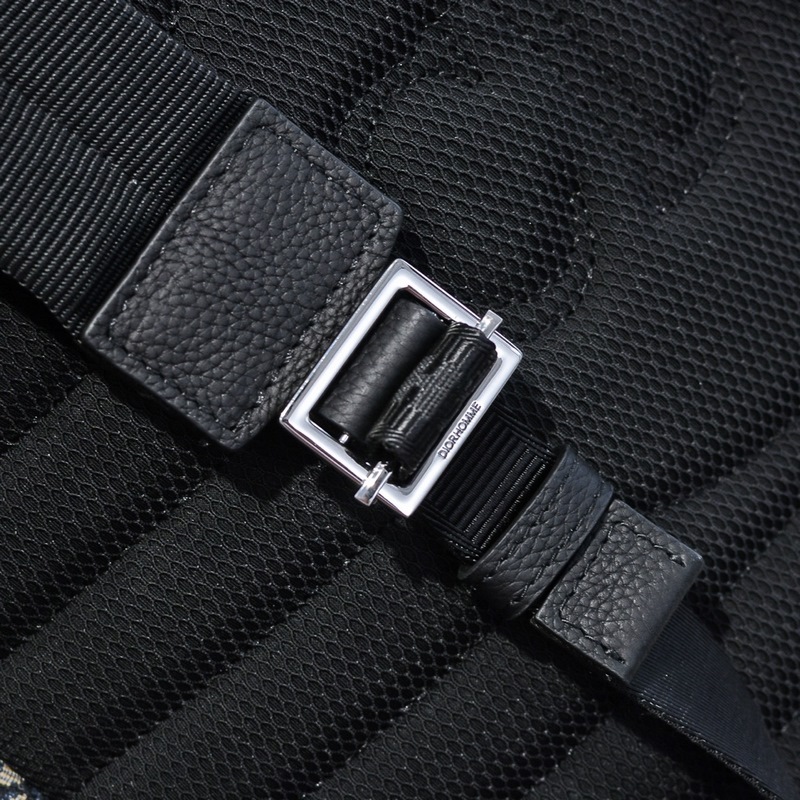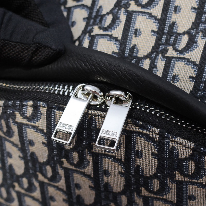 Dior ? 새로운 남성용 배낭 모델 131-13 상징적인 베이지와 블랙의 오블리크 패턴 자카드 블랙 그레인 소가죽 디테일 앞면에 대용량 지퍼 포켓 금속으로 덮인 황동 DIOR 로고 길이 조절이 가능한 패딩 나일론 스트랩 넉넉한 내부 공간 세련되고 독특한 매력 다용도 캐주얼 외출용으로 세련됨 크기: 30.42.15cm