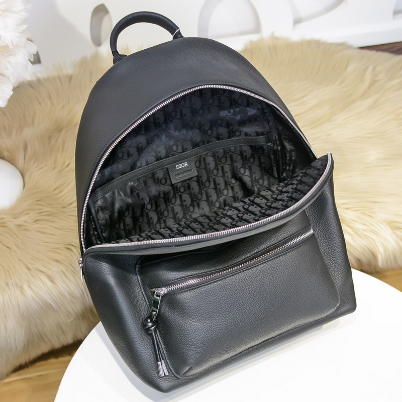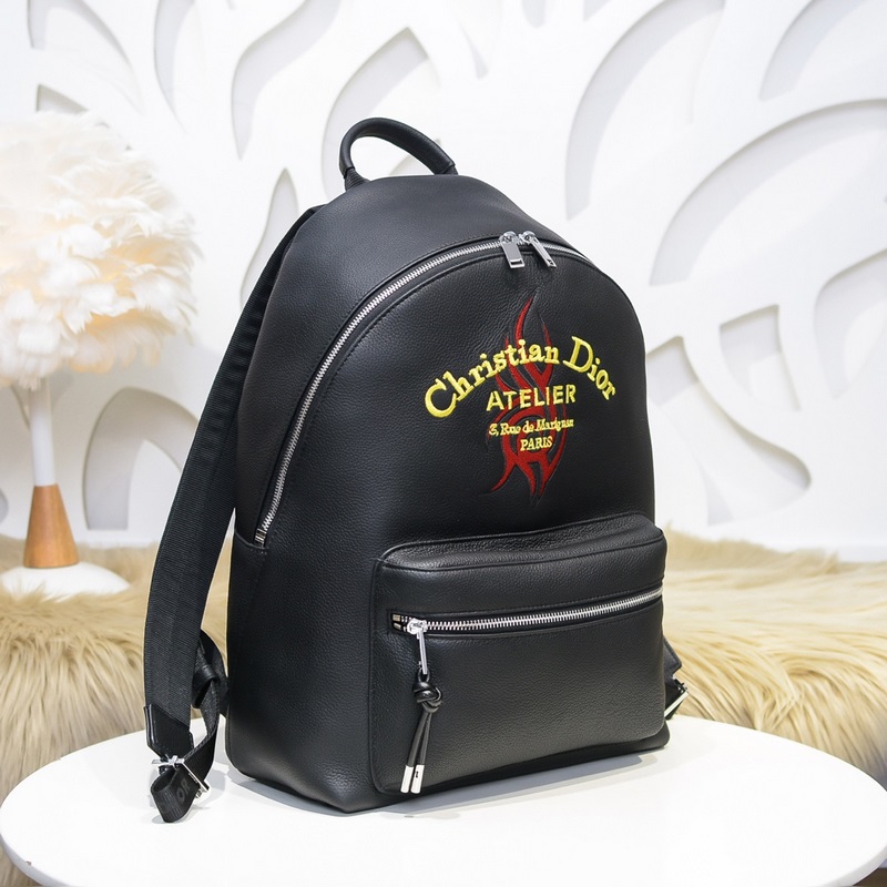 Dior - 새로운 남성용 블랙 배낭 불꽃 무늬 로고 모델 071-8 수입된 거친 송아지 가죽 부드러운 가죽 최고급 하드웨어 고급스럽고 세련된 참신한 스타일 독특한 매력 다용도 캐주얼 유행하는 트렌드 외출할 때 멋지다 크기: 40.30.20cm