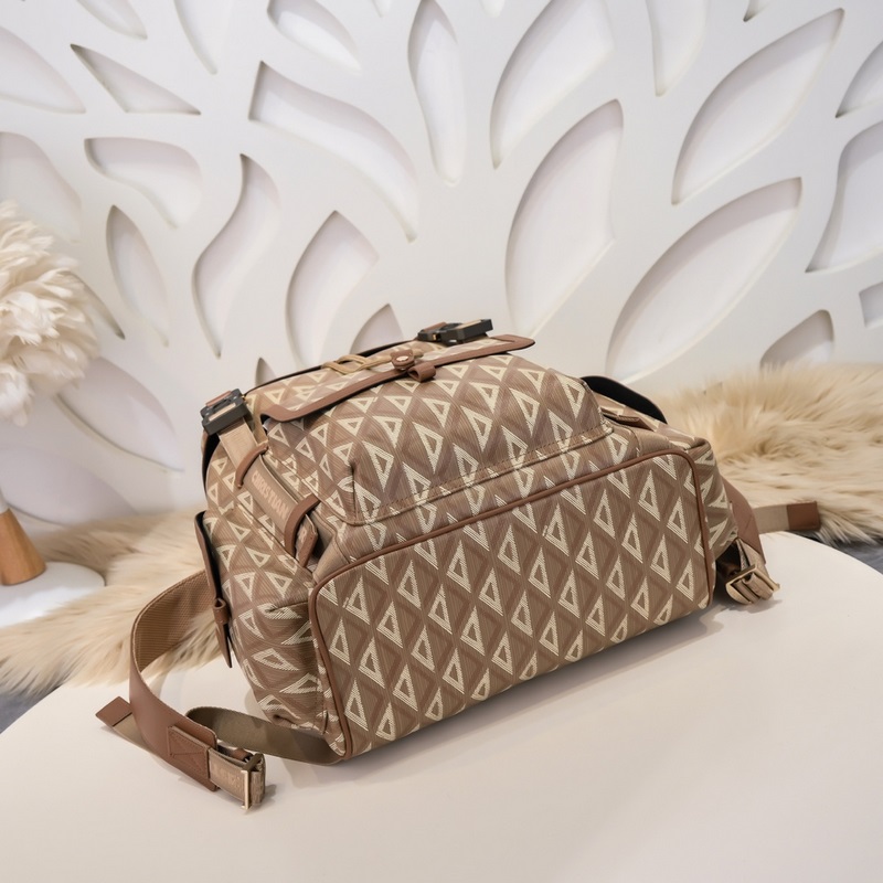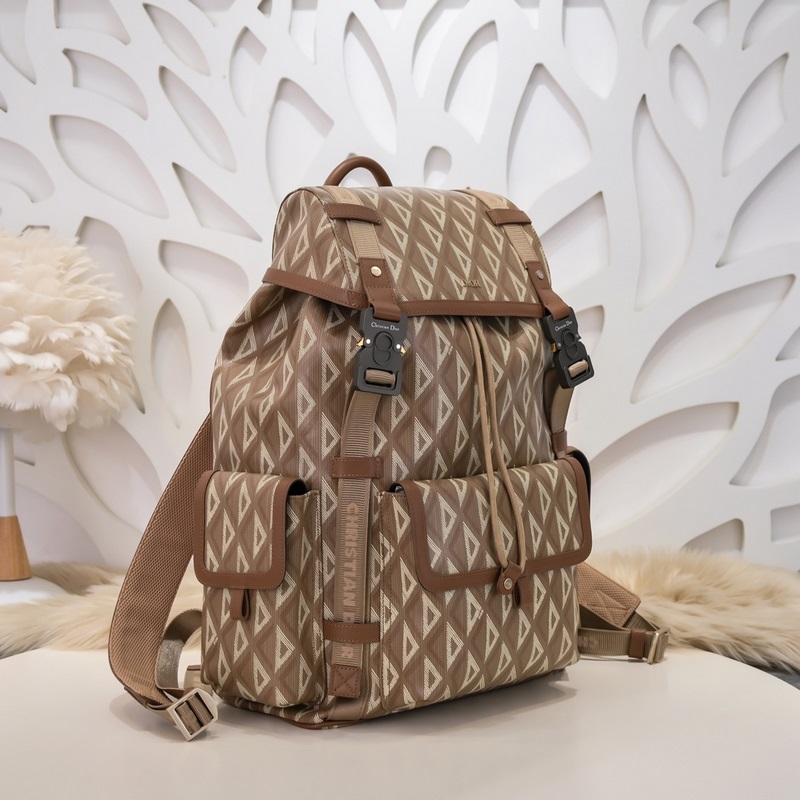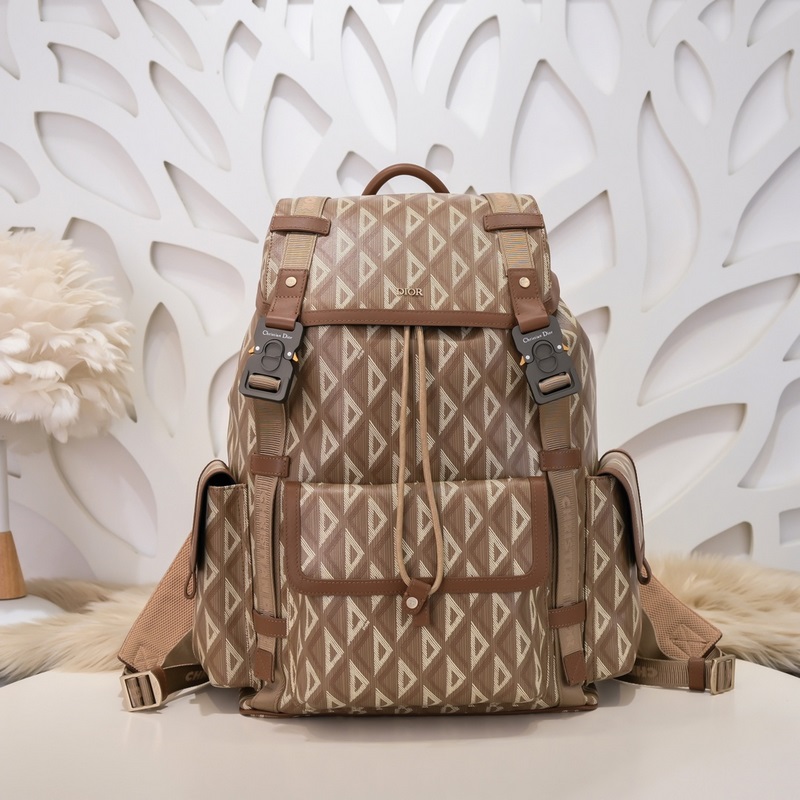 Dior - 새로운 남성용 배낭 모델 D8005 이 Dior Hit the Road 백팩은 이번 시즌에 새롭게 선보이는 스타일로 모던한 스타일과 디올의 오뜨 꾸뛰르 정신을 결합한 제품입니다. 디올의 커피색 CD 다이아몬드 패턴 캔버스로 제작되었으며 두 개의 CHRISTIAN DIO 로고 나일론 자카드 스트랩이 달려 있습니다. 넉넉한 메인 수납공간과 큰 앞쪽 플랩 포켓 그리고 측면에 두 개의 플랩 포켓이 있습니다. 촉감이 좋고 내부 용량이 크며 참신한 스타일과 독특한 매력이 있습니다. 다용도로 사용할 수 있고 캐주얼하고 실용적이며 외출할 때 멋지게 보이게 해 줍니다. 크기: 43.51.20cm