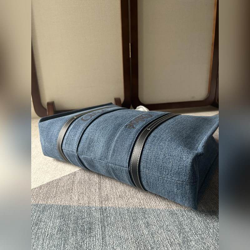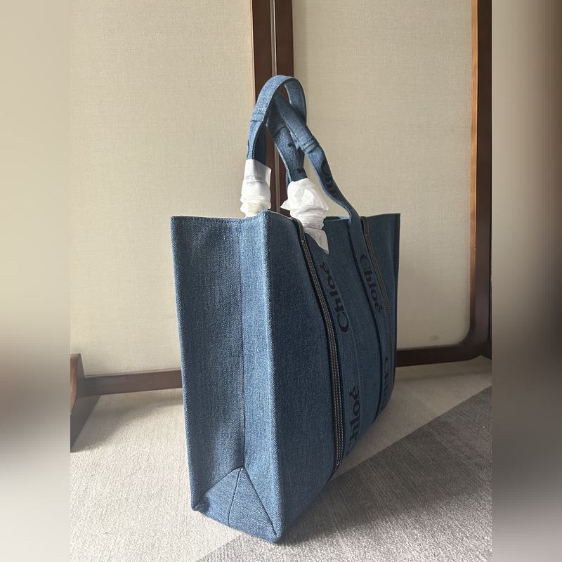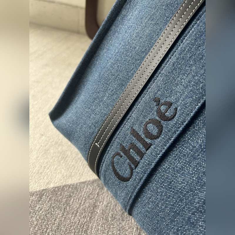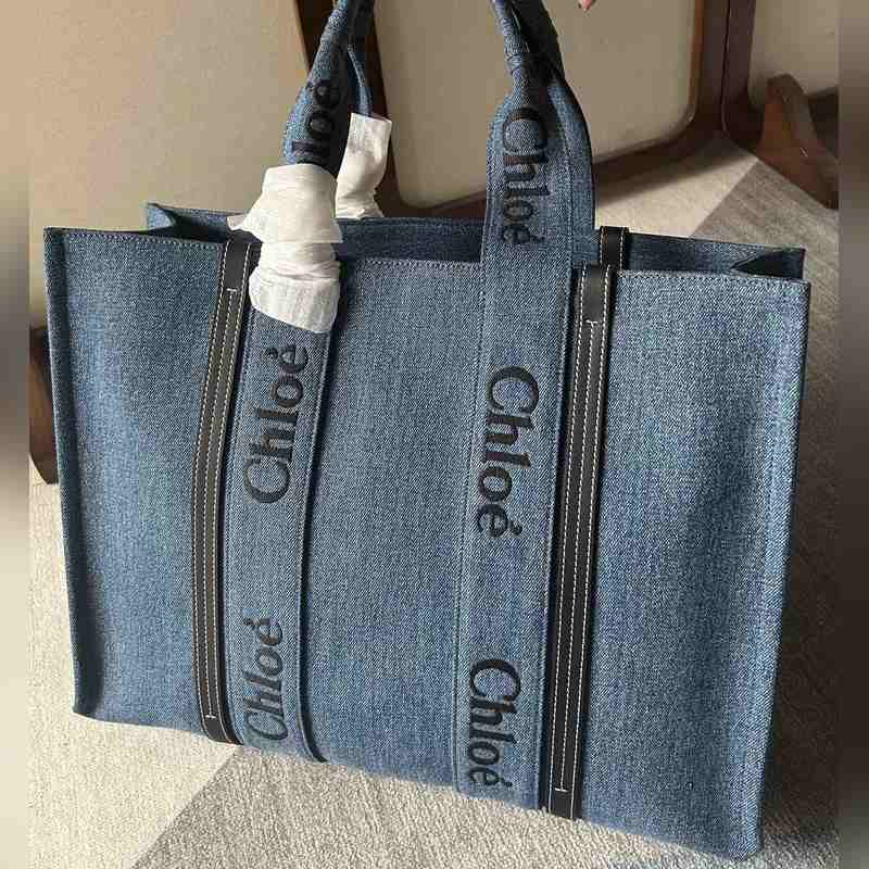 Chlo? 우디 토트 백 대용량 스타일리시한 데님 소재 평소 외출
