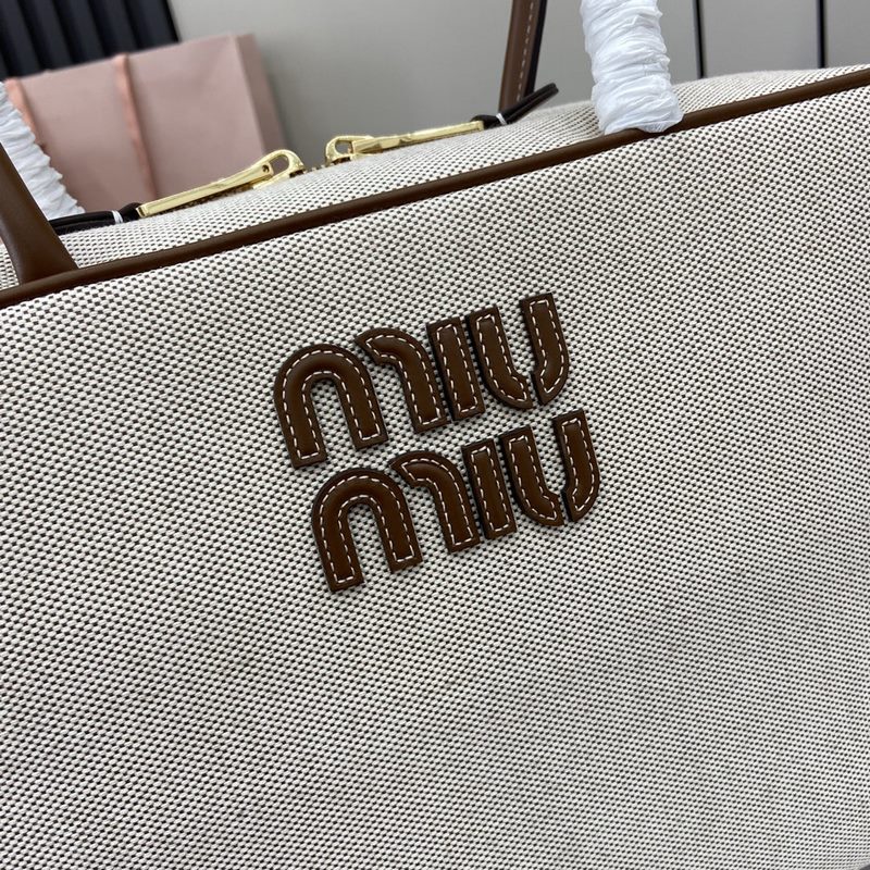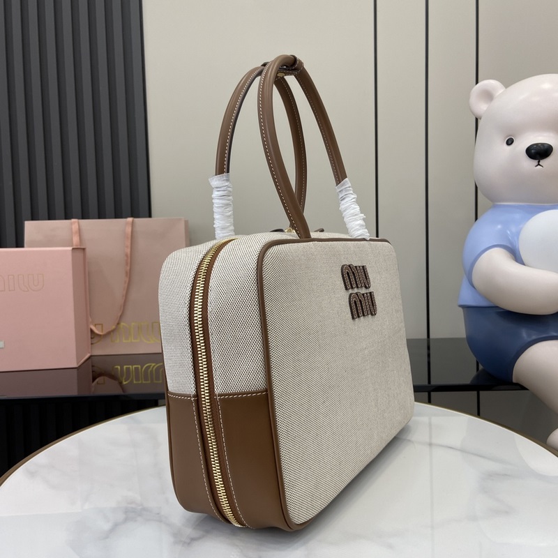 [신규] MIU 오리지널 캔버스 브리프케이스 카라멜 브라운 색상. 패션