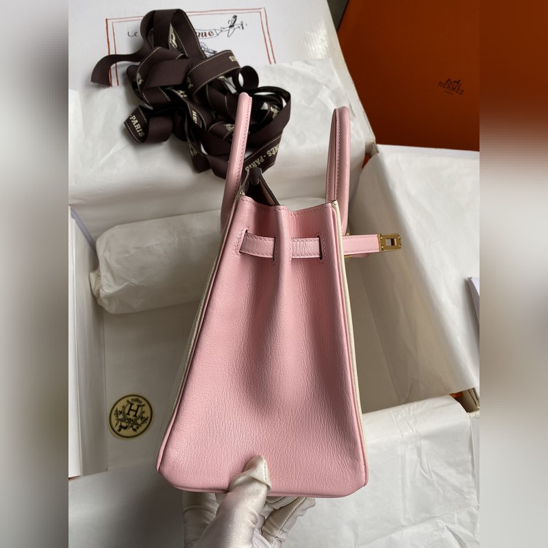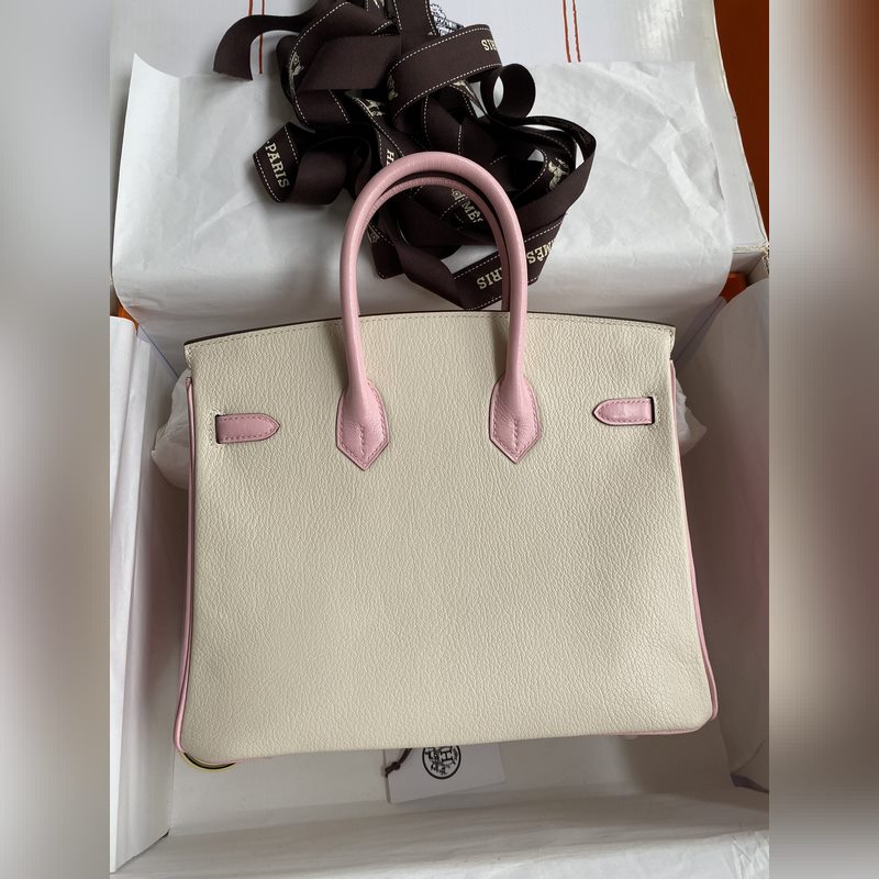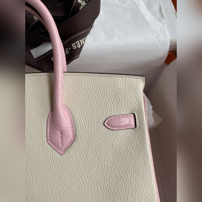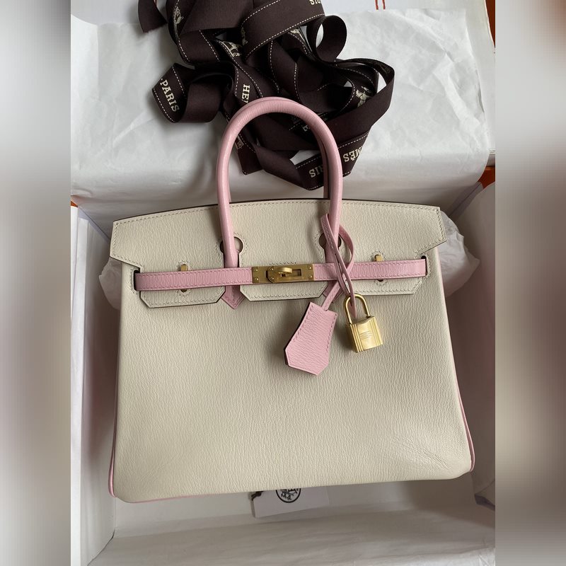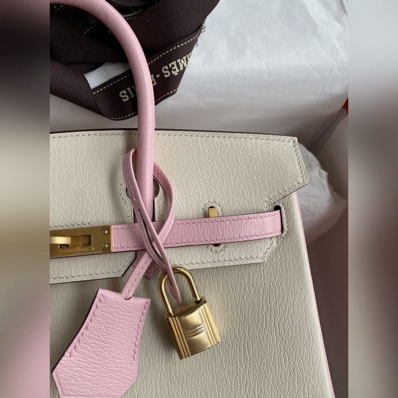 맞춤 제작 수작업 버킨 25cm 수입 염소 가죽 크림색과 흰색에