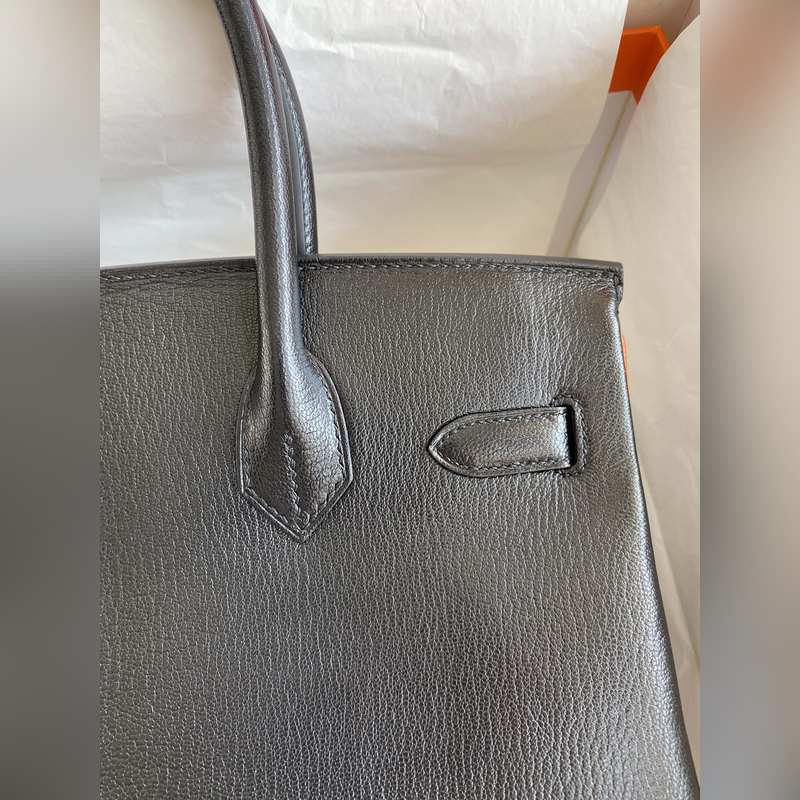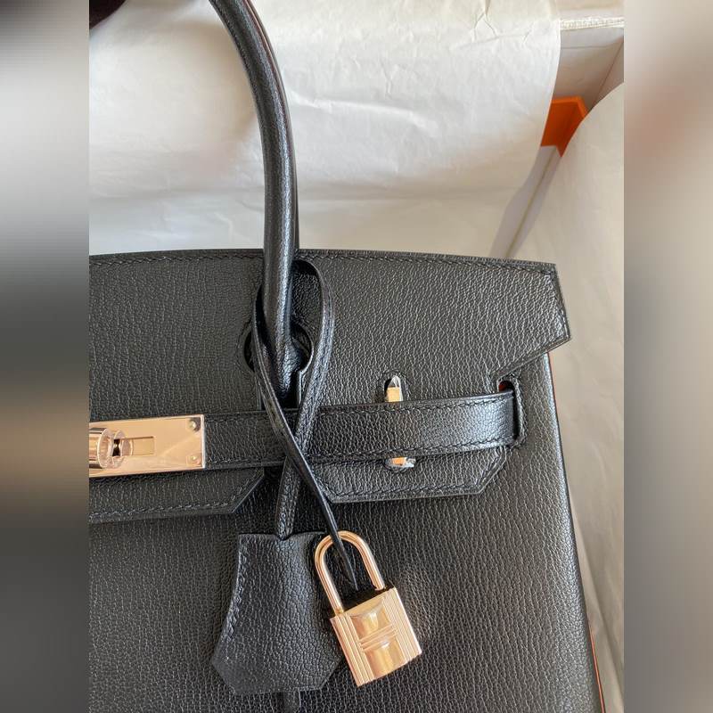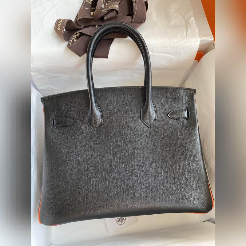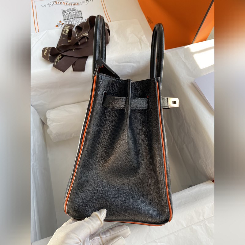 맞춤 제작 수제 버킨 30cm 수입 염소 가죽 블랙에 불꽃 오렌지