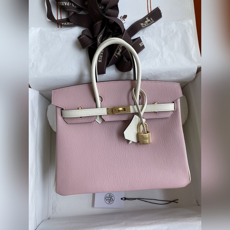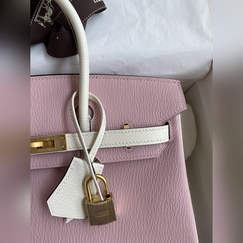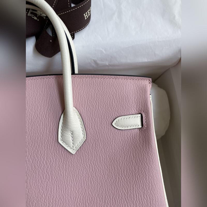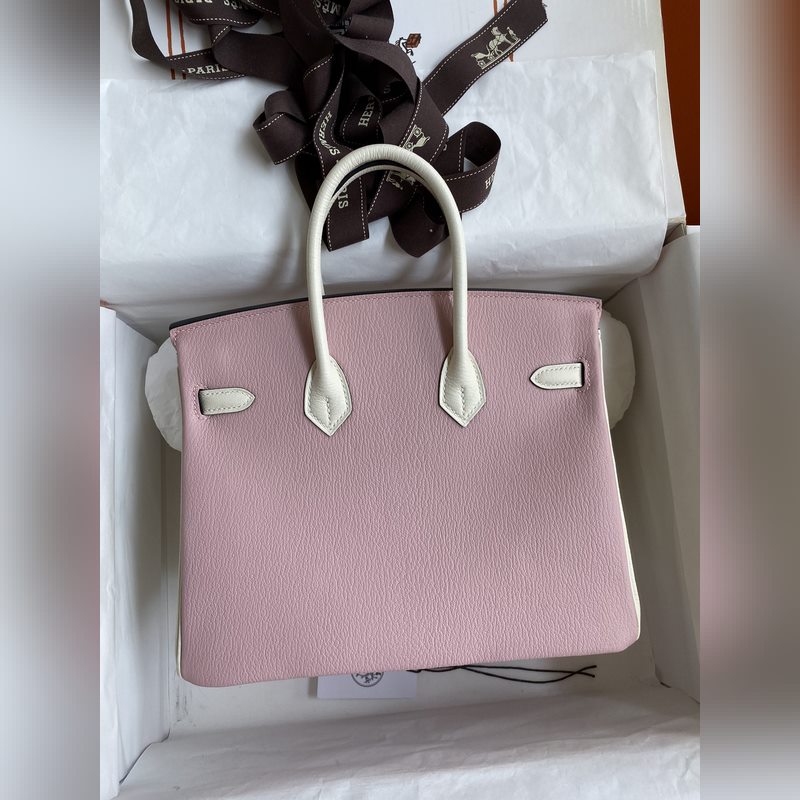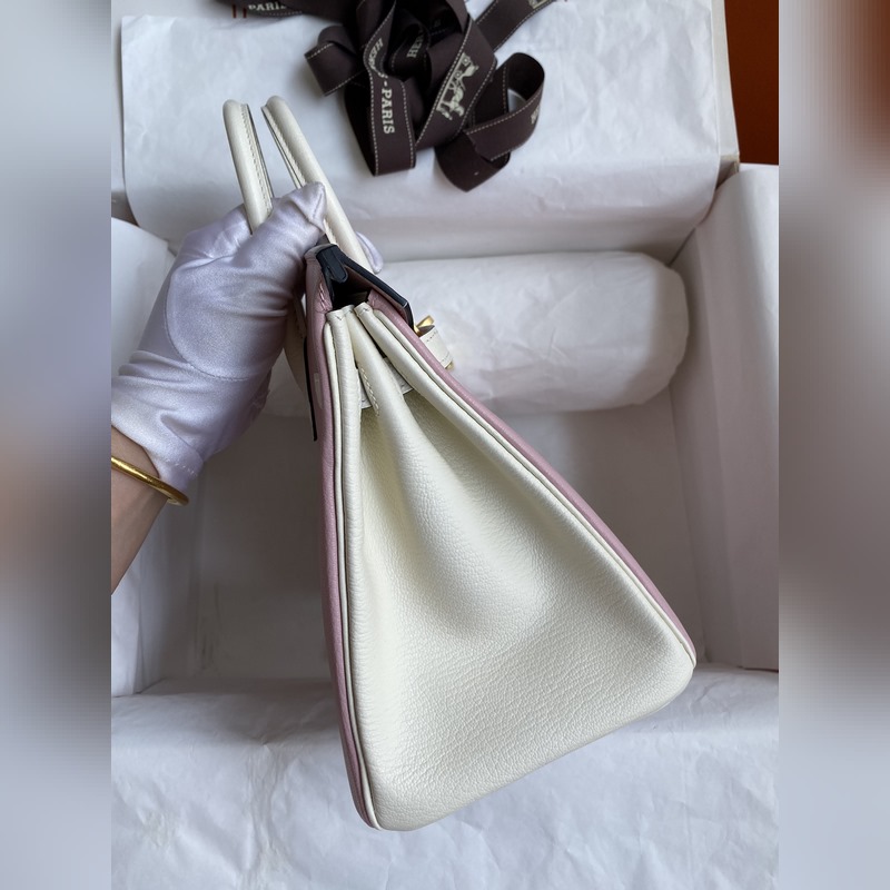 맞춤 제작 수제 버킨 25cm 수입 염소 가죽 3Q 핑크와 크림