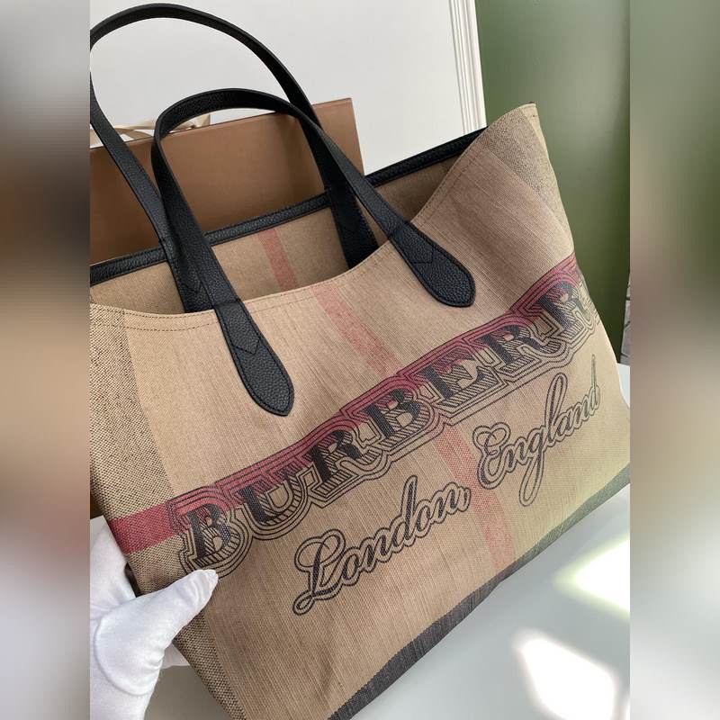 B가 양면 투용 토트백 코팅 체크 무늬 캔버스 소재. 자유분방한 낙