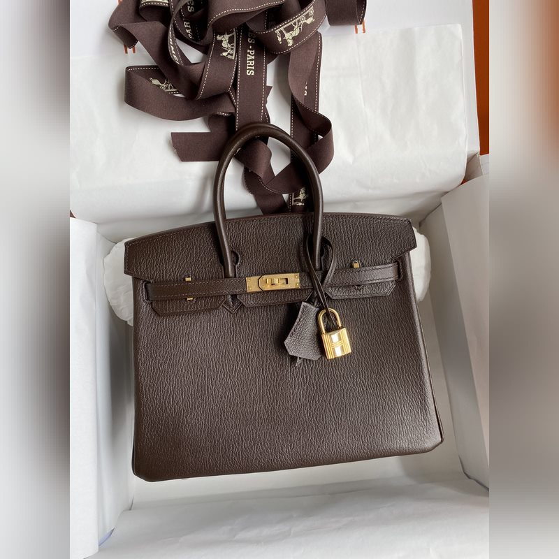 맞춤 제작 수작업 버킨 25cm 수입 염소 가죽 흑단색 금색 버