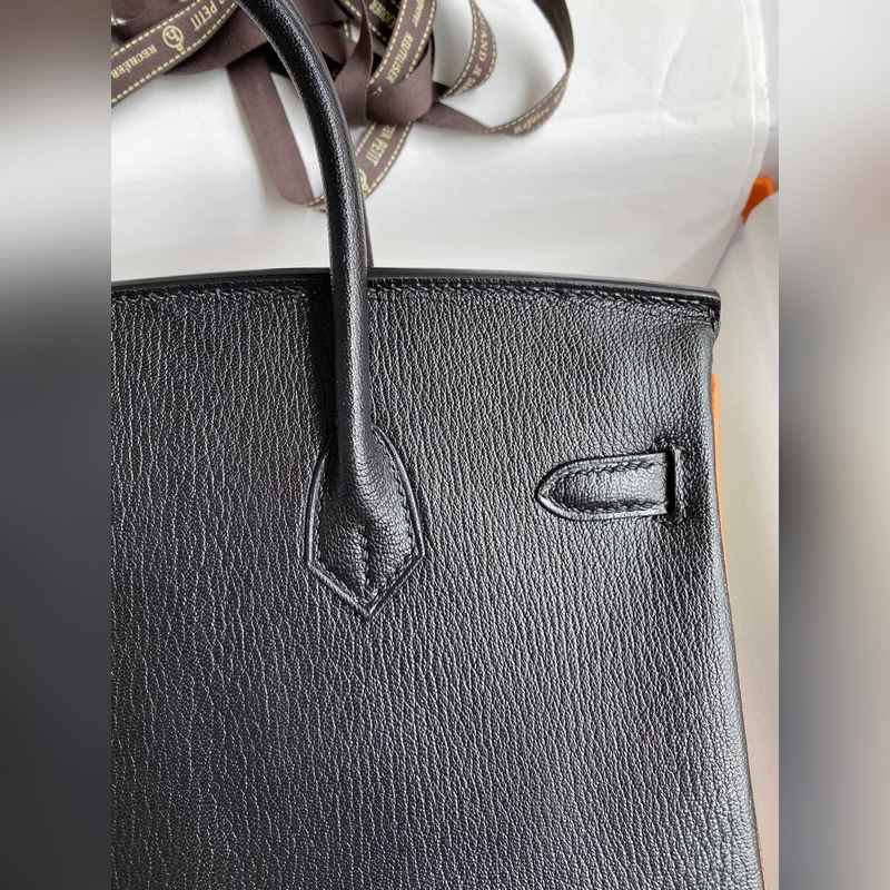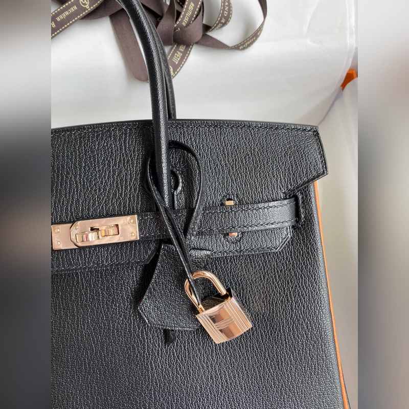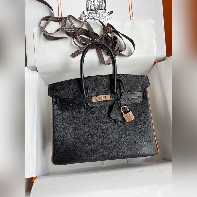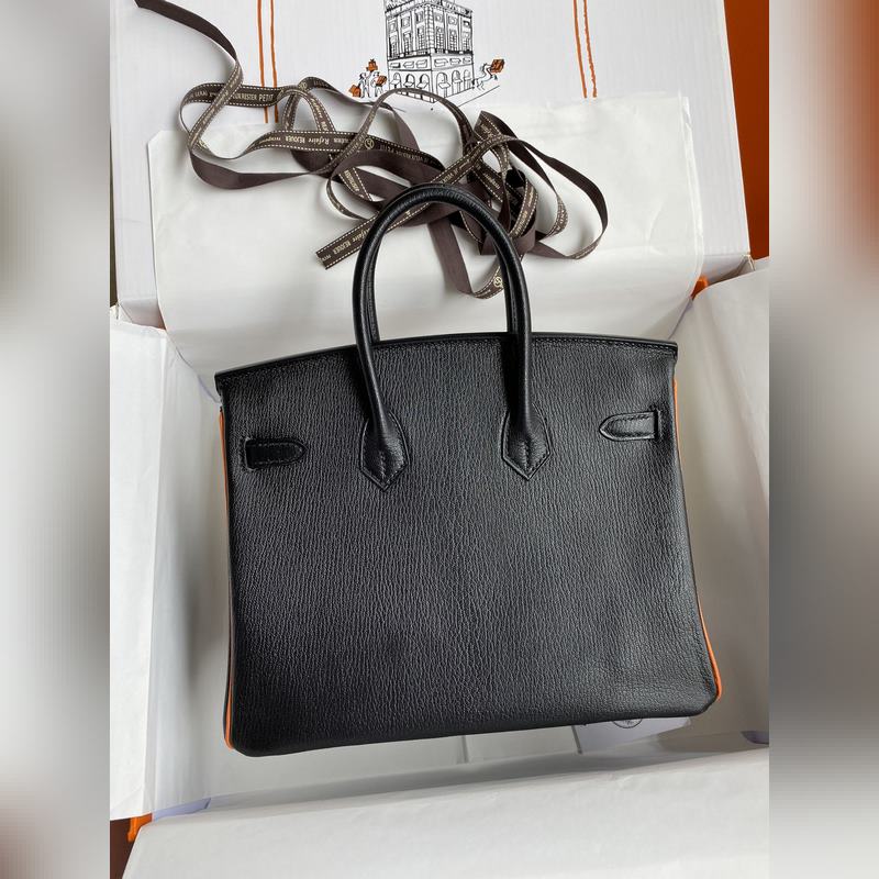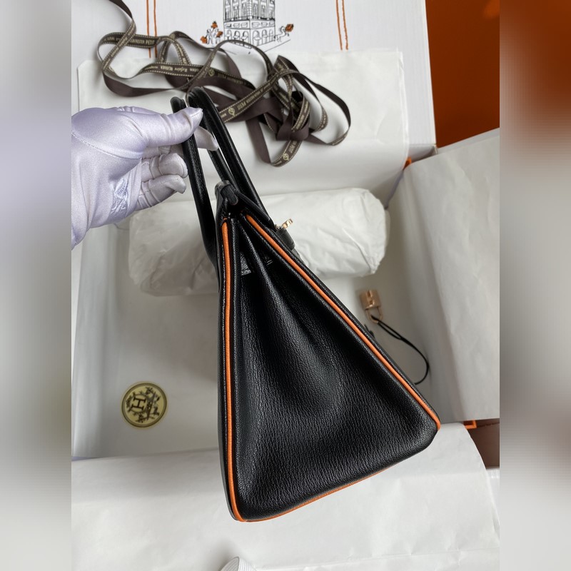 맞춤 제작 수제 버킨 25cm 수입 염소 가죽 블랙에 불꽃 오렌지