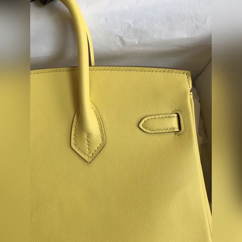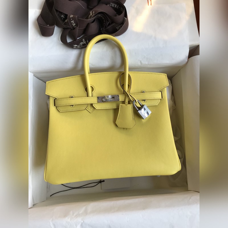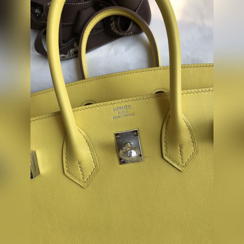 맞춤 제작 수작업 버킨 25cm 수입 스위프트 가죽 레몬 옐로우