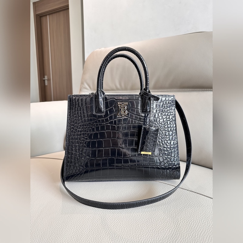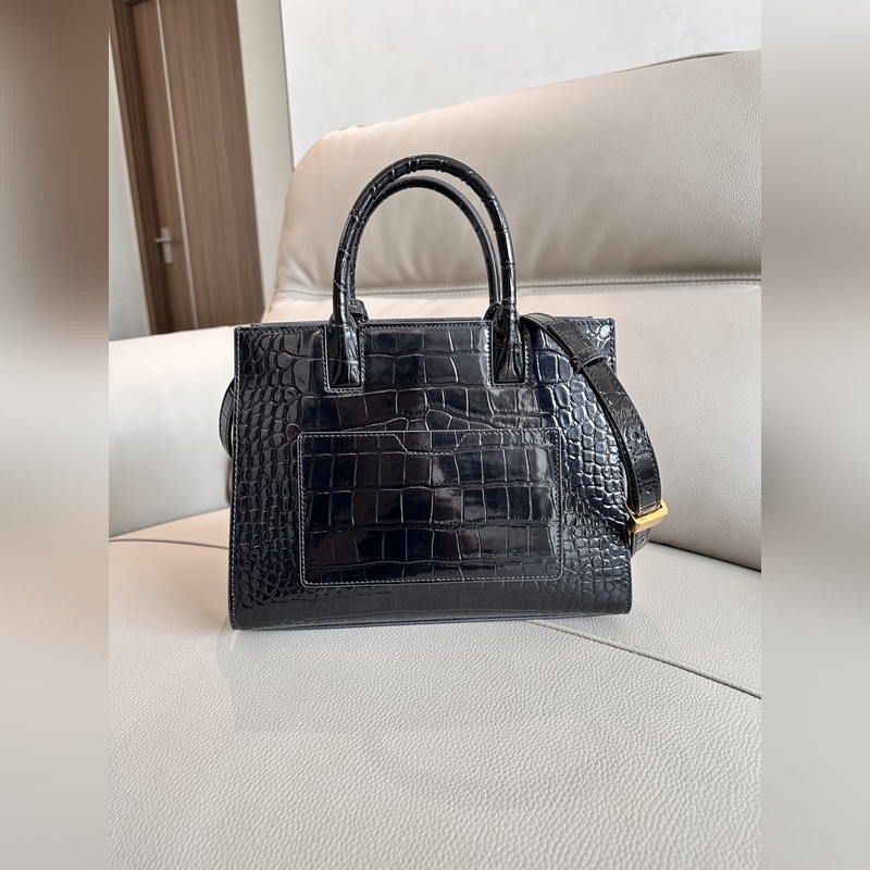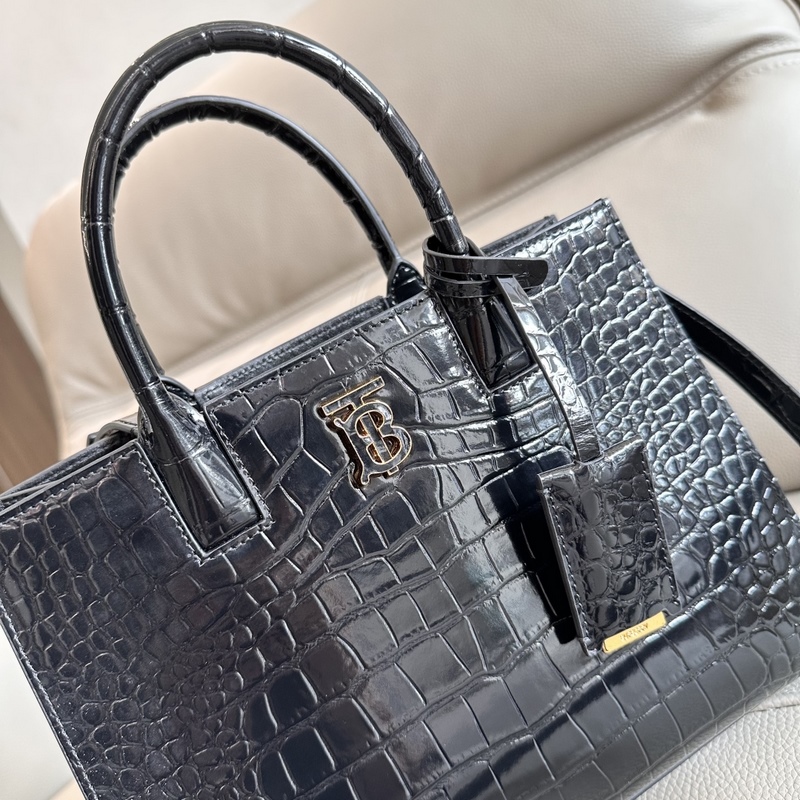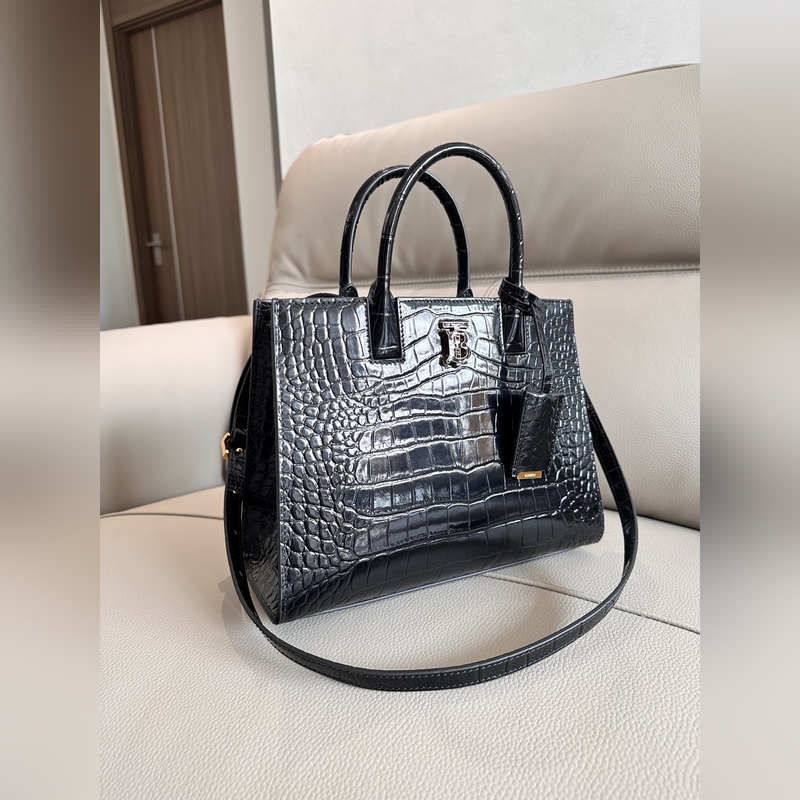 B가 최신 토트백은 이탈리아산 무두질 악어 무늬 질감의 압인 가죽으로