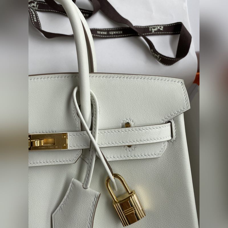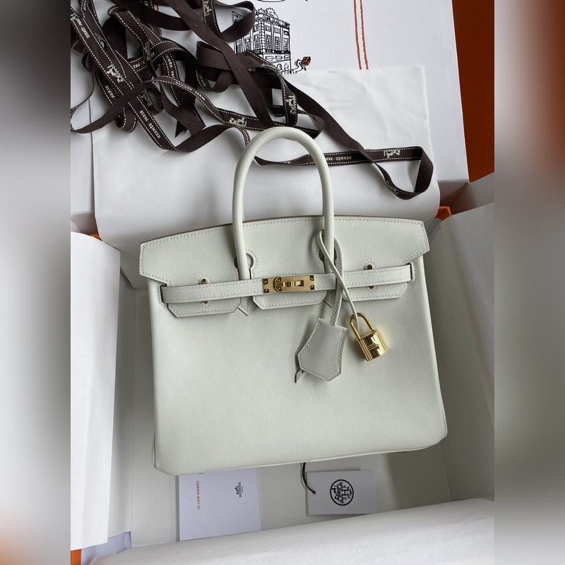 맞춤 제작 수작업 버킨 25cm 수입 스위프트 가죽 빙하색 금색