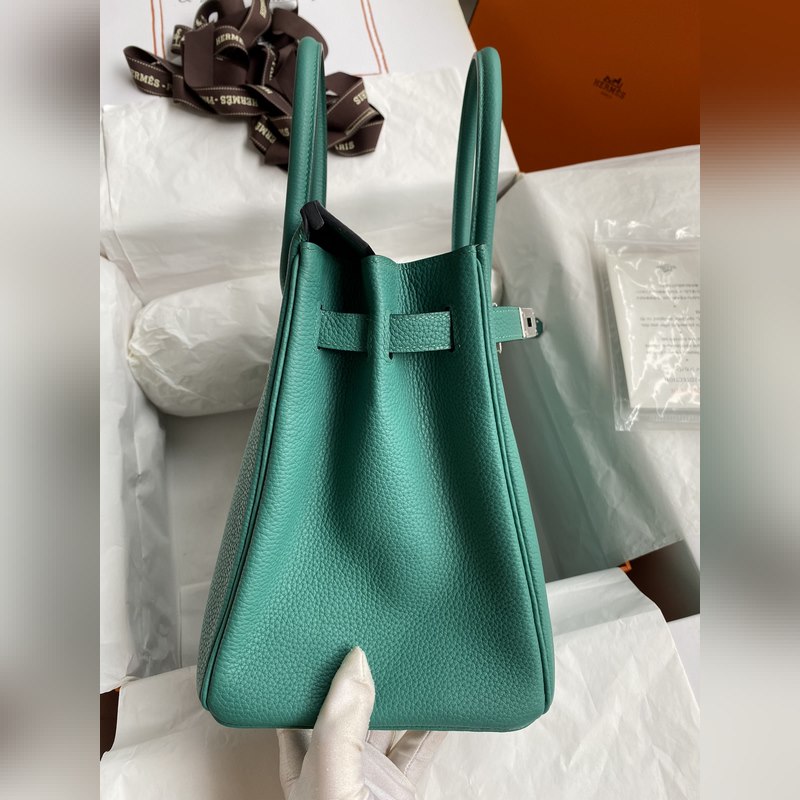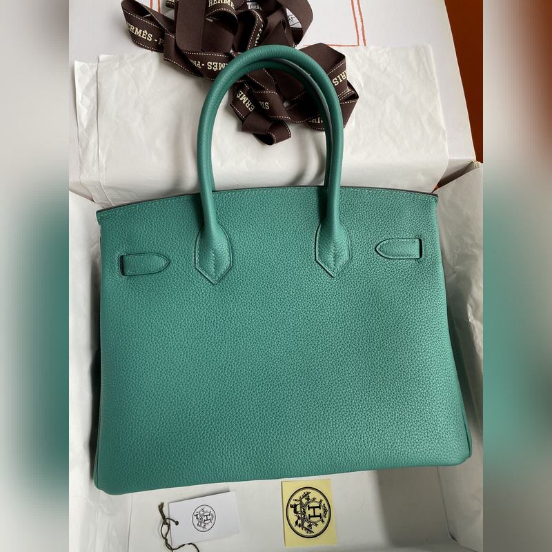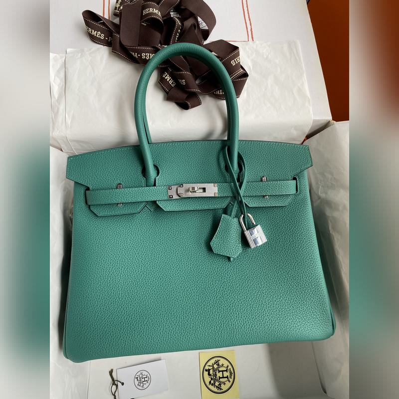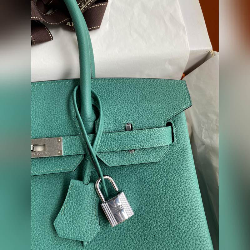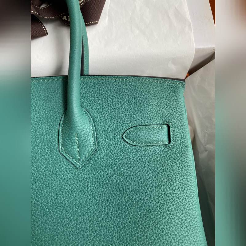 핸드 스티치 버킨 30cm 수입 토고 피콕 블루 실버 버클