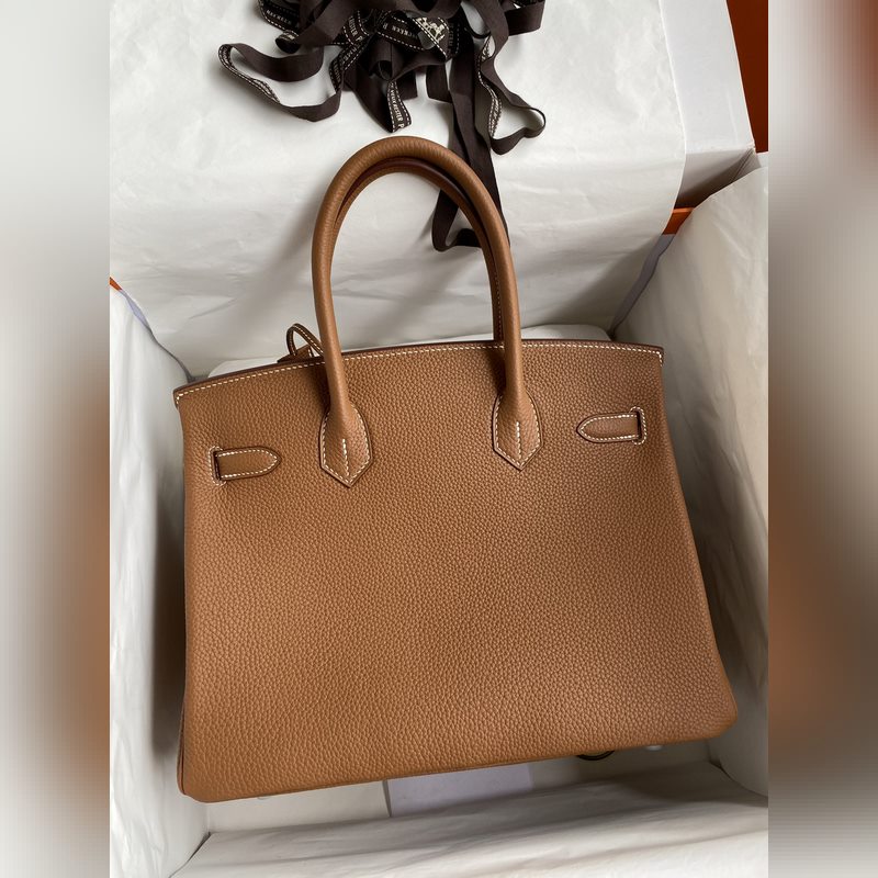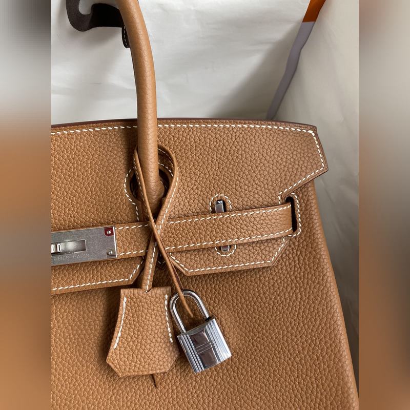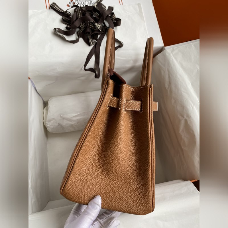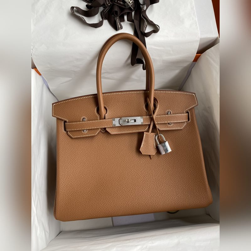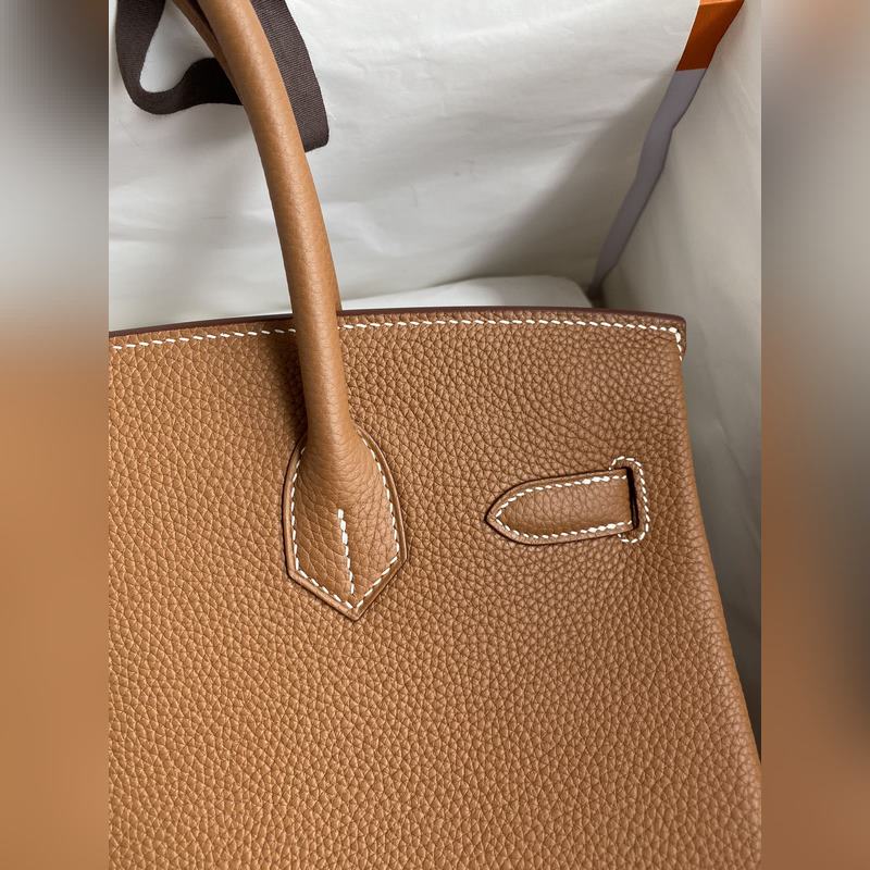 수제 버킨 30cm 수입 토고 가죽 골든 브라운 실버 버클