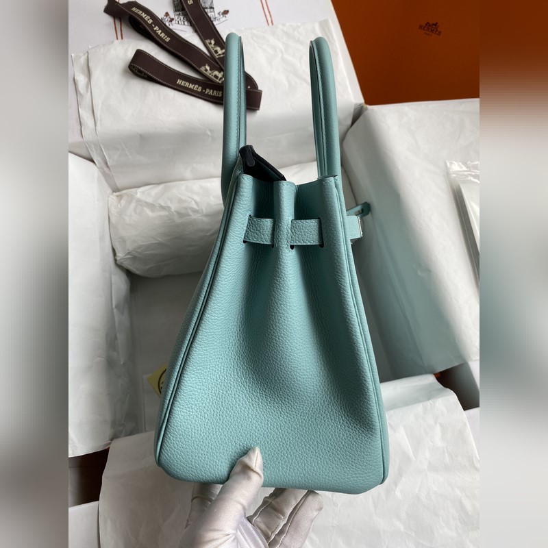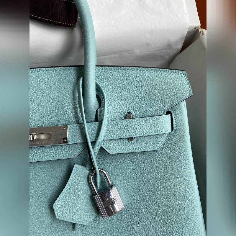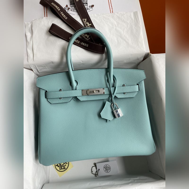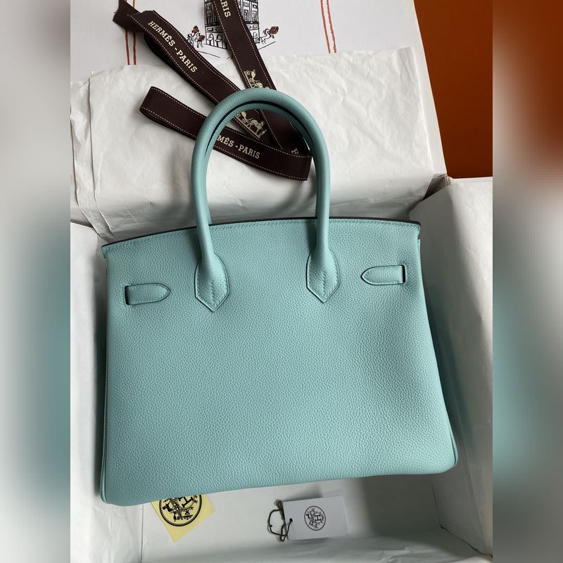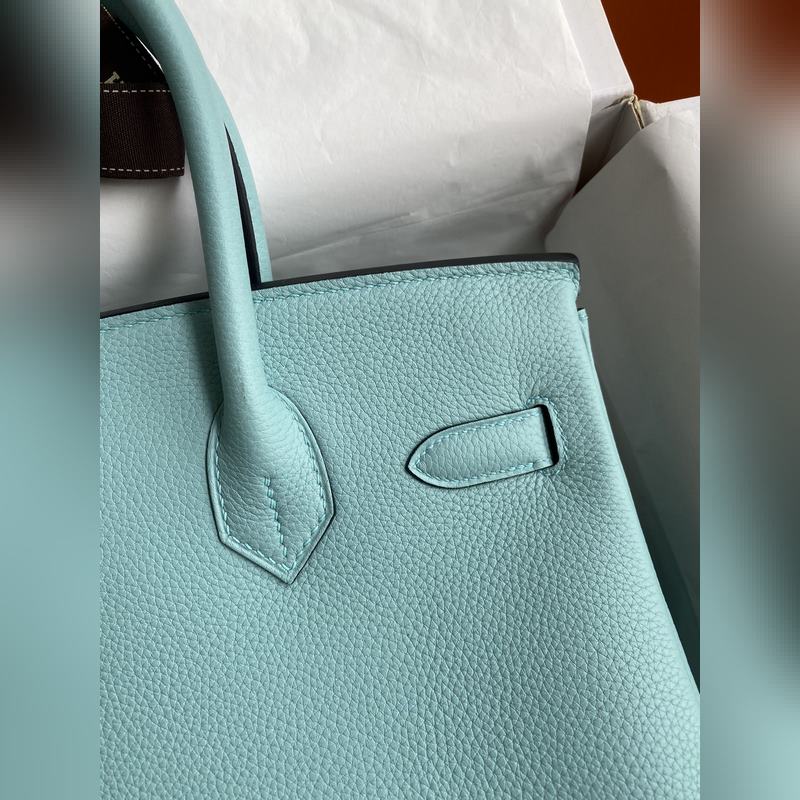 수제 스티치 버킨 30cm 수입 토고 가죽 마카롱 블루와 실버 하드웨어