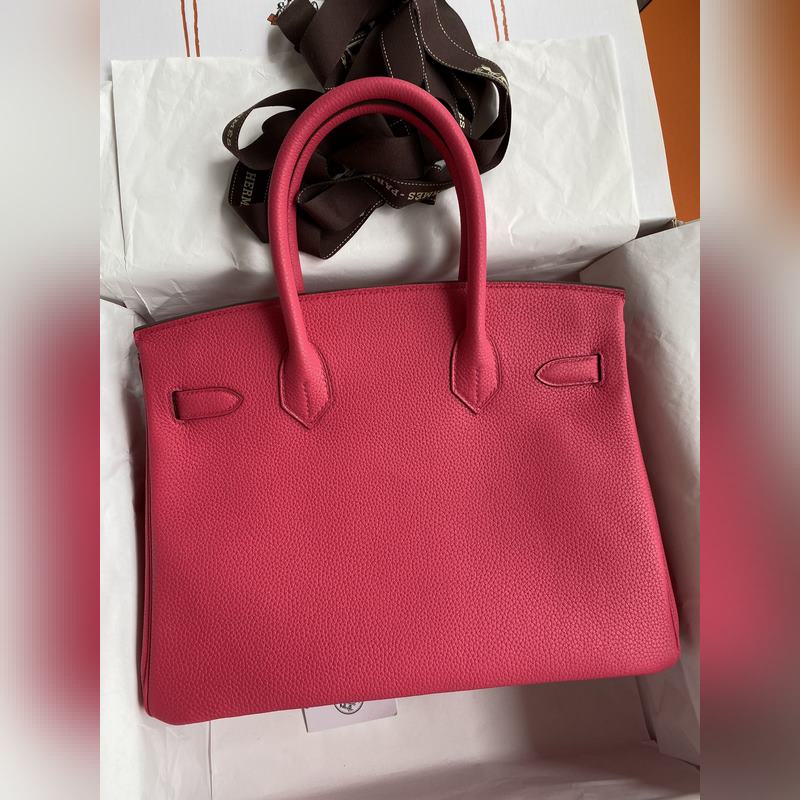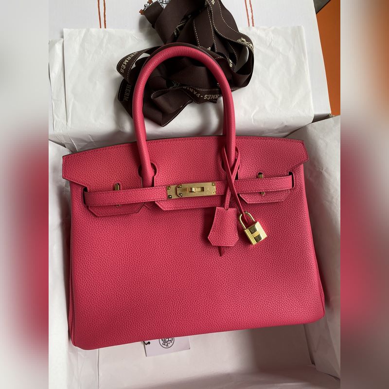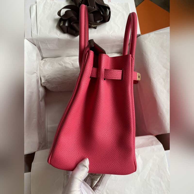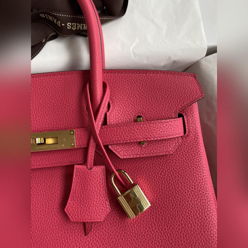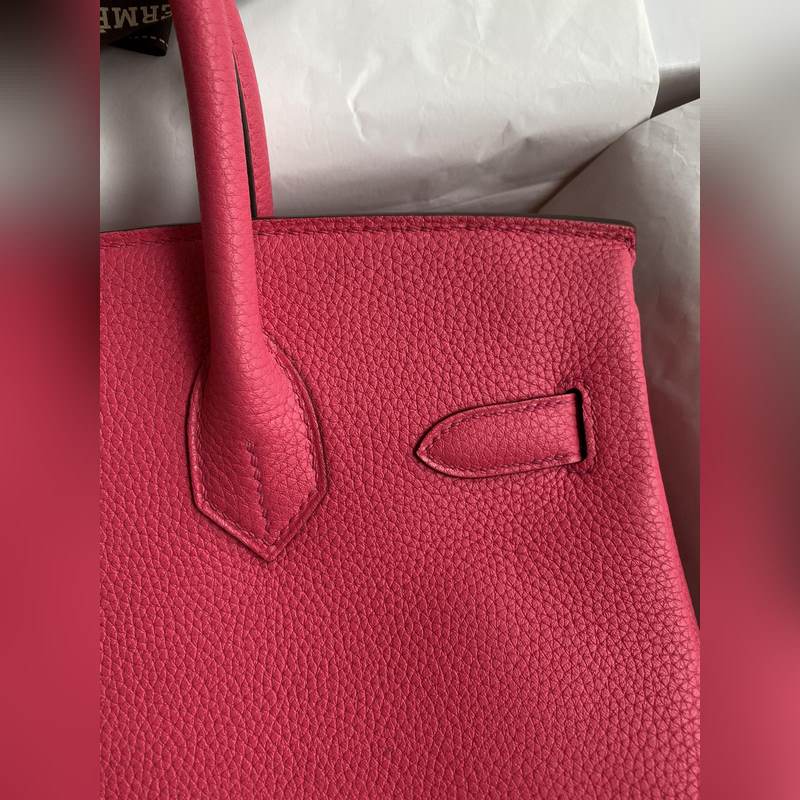 수제 스티치 버킨 30cm 수입 토고 가죽 로즈 레드 골드 버클