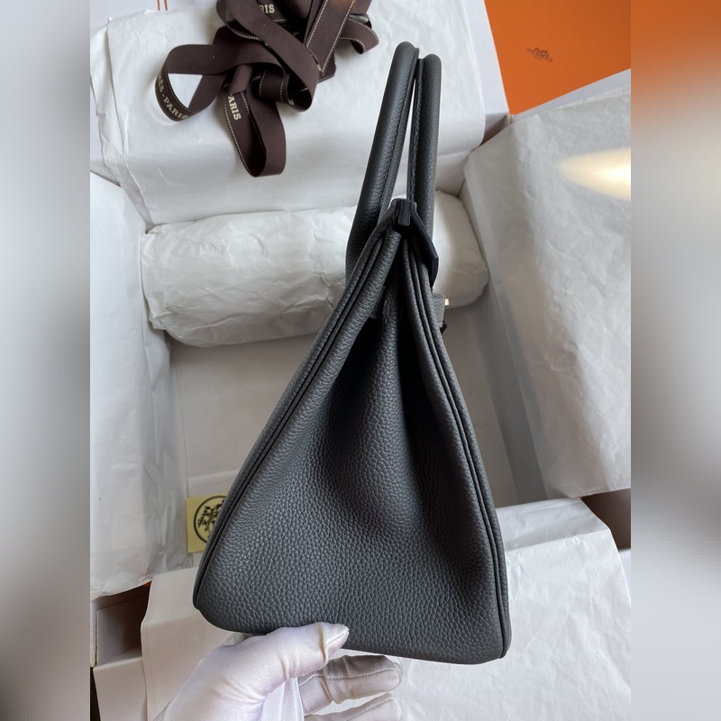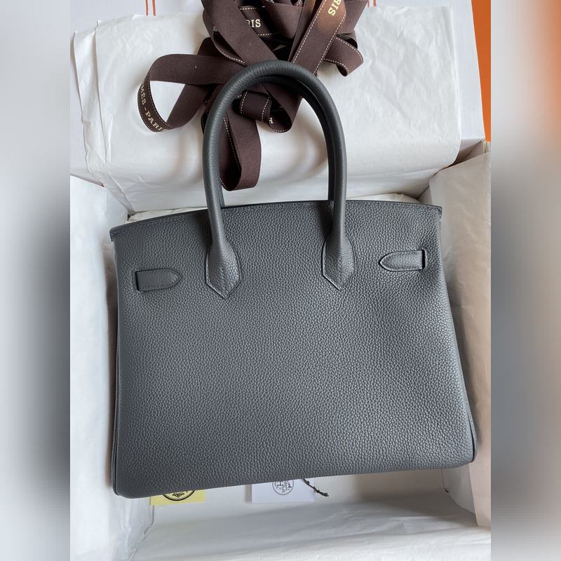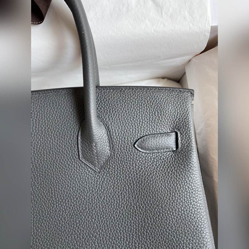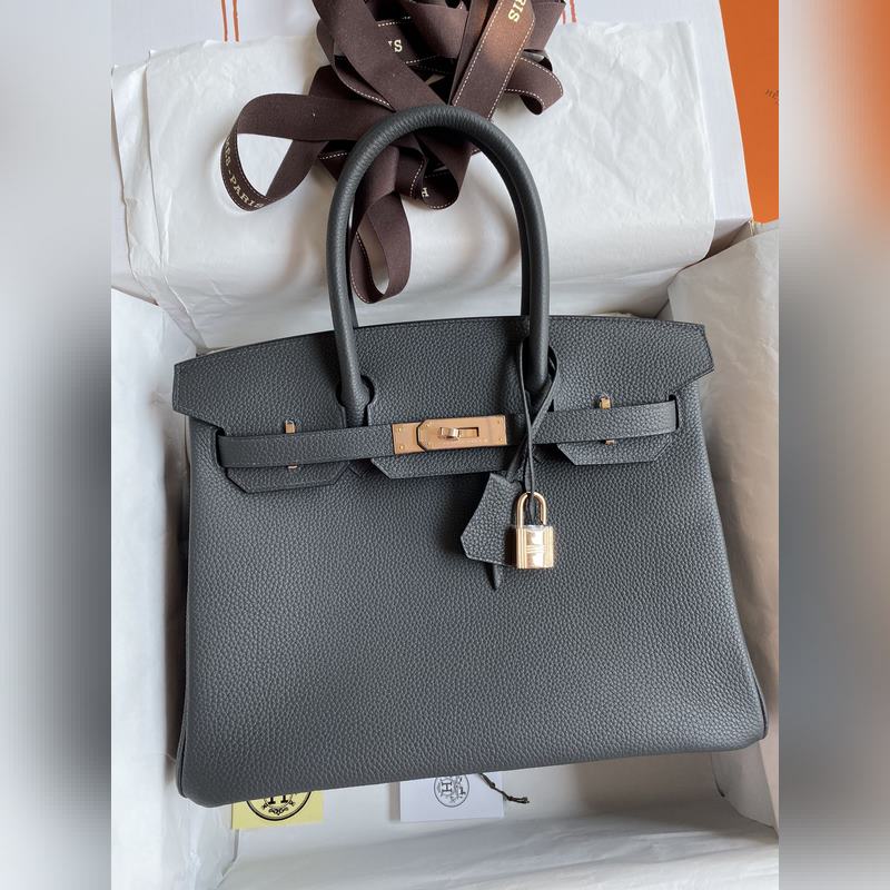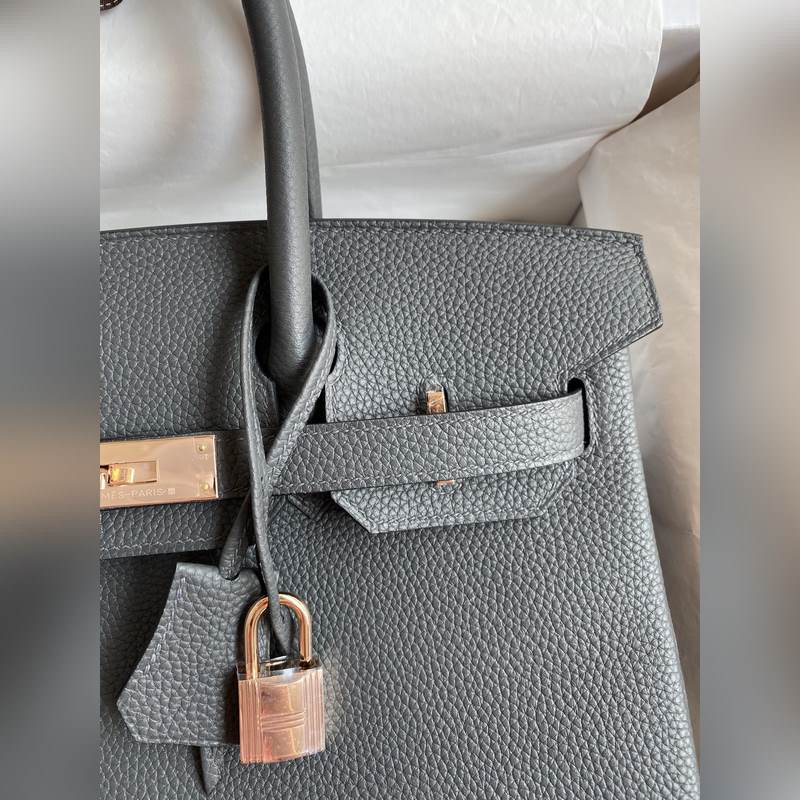 수제 스티치 버킨 30cm 토고산 가죽 아이언 그레이에 로즈 골드 하드웨