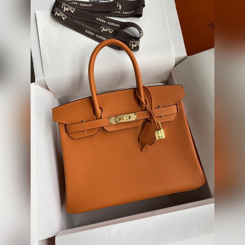 수제 버킨 30cm 토고산 가죽 오렌지 골드 하드웨어