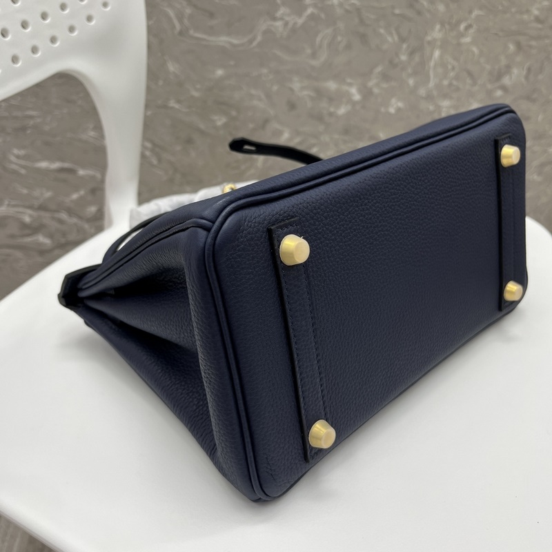 사파이어 블루에 금색 버클 가죽 플래티넘 25cm 반손 왁스 실 재봉