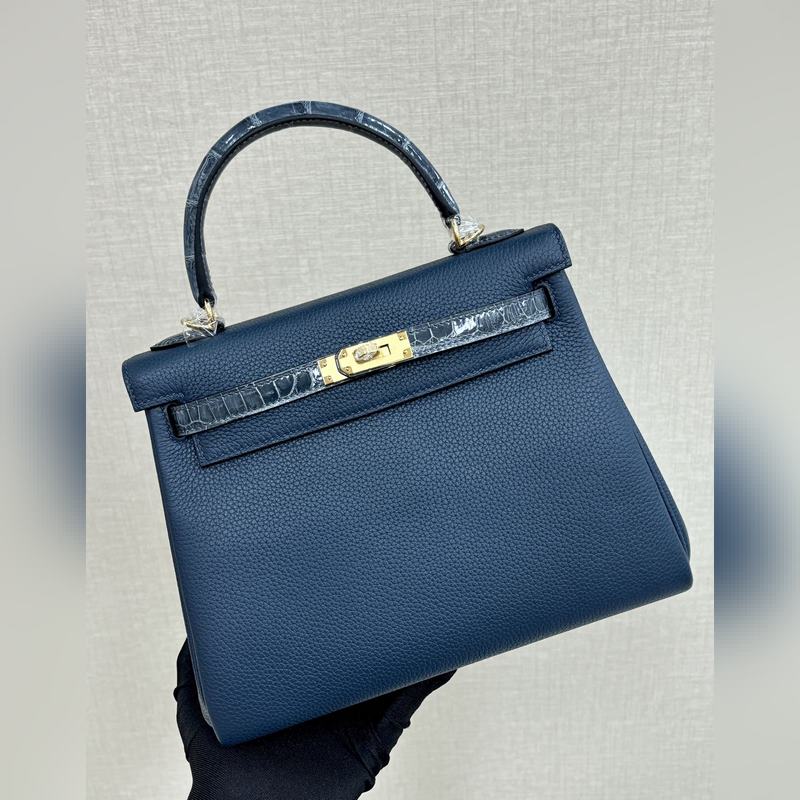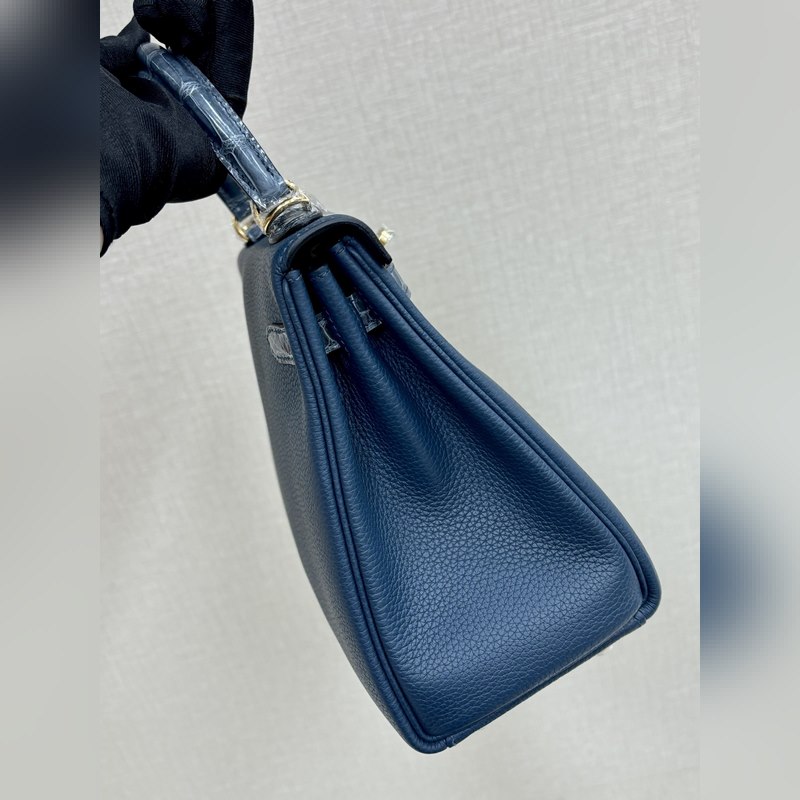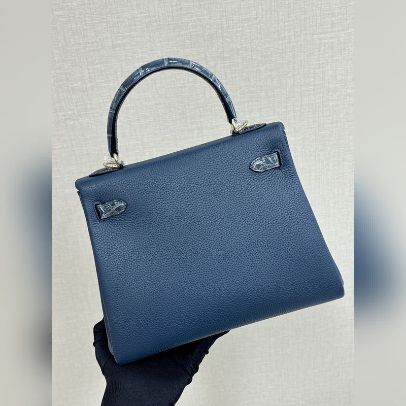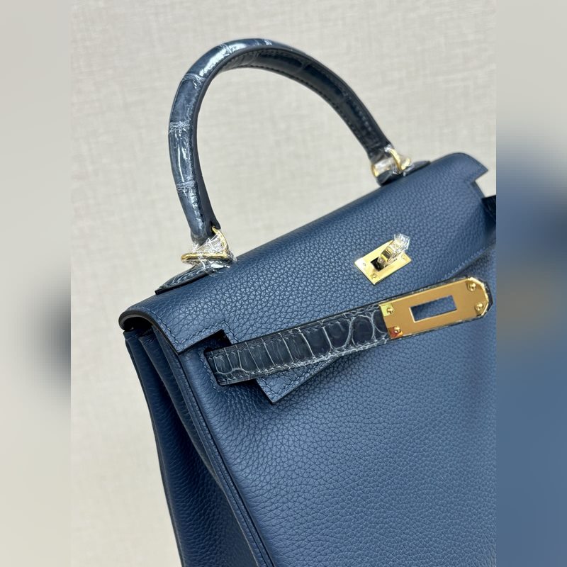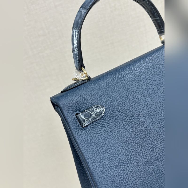 켈리 터치 25cm 악어 가죽에 반짝이는 토고 가죽 프러시안 블루 수