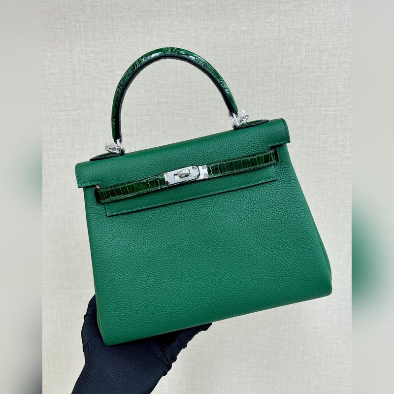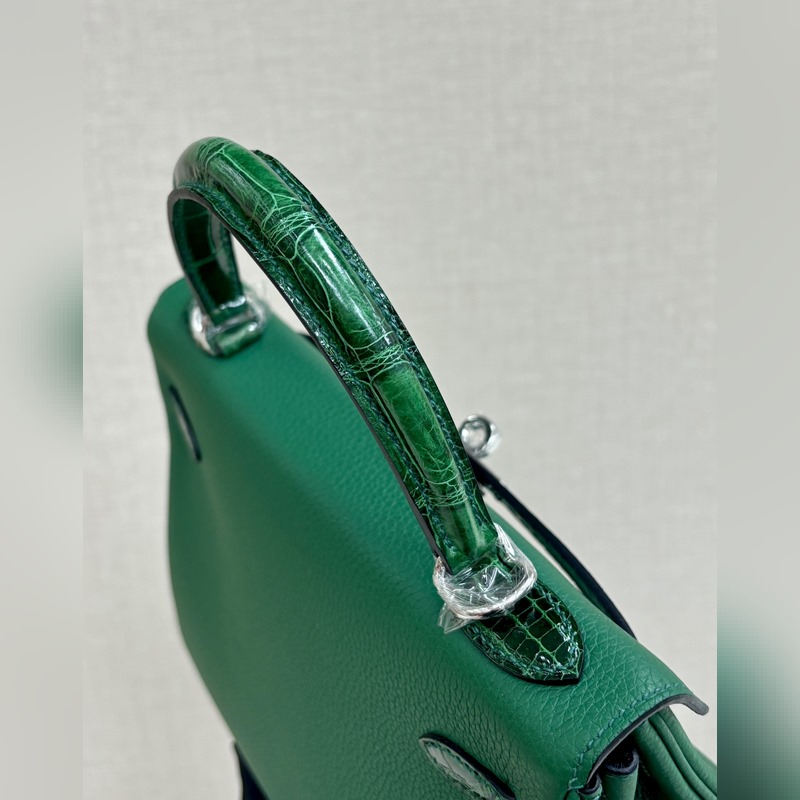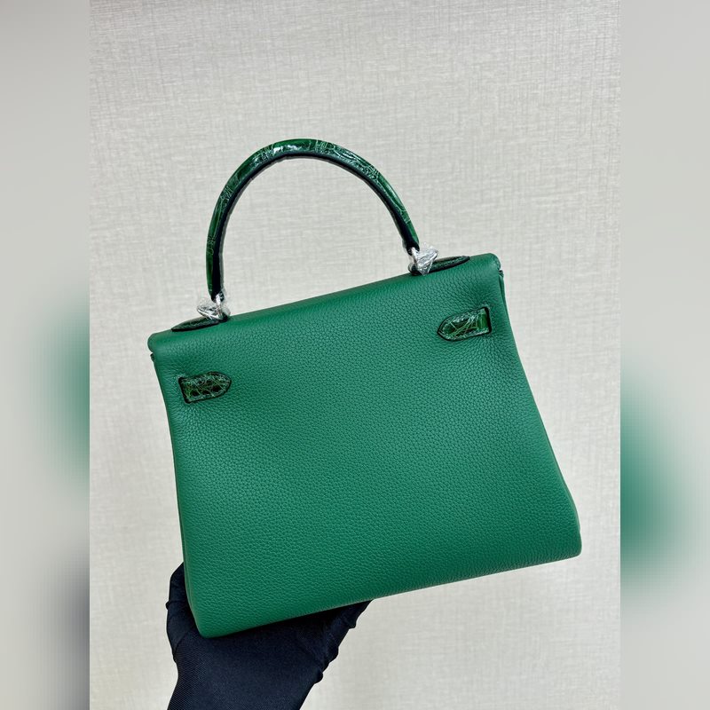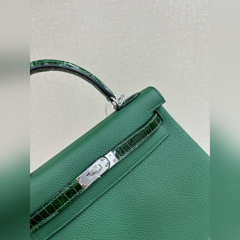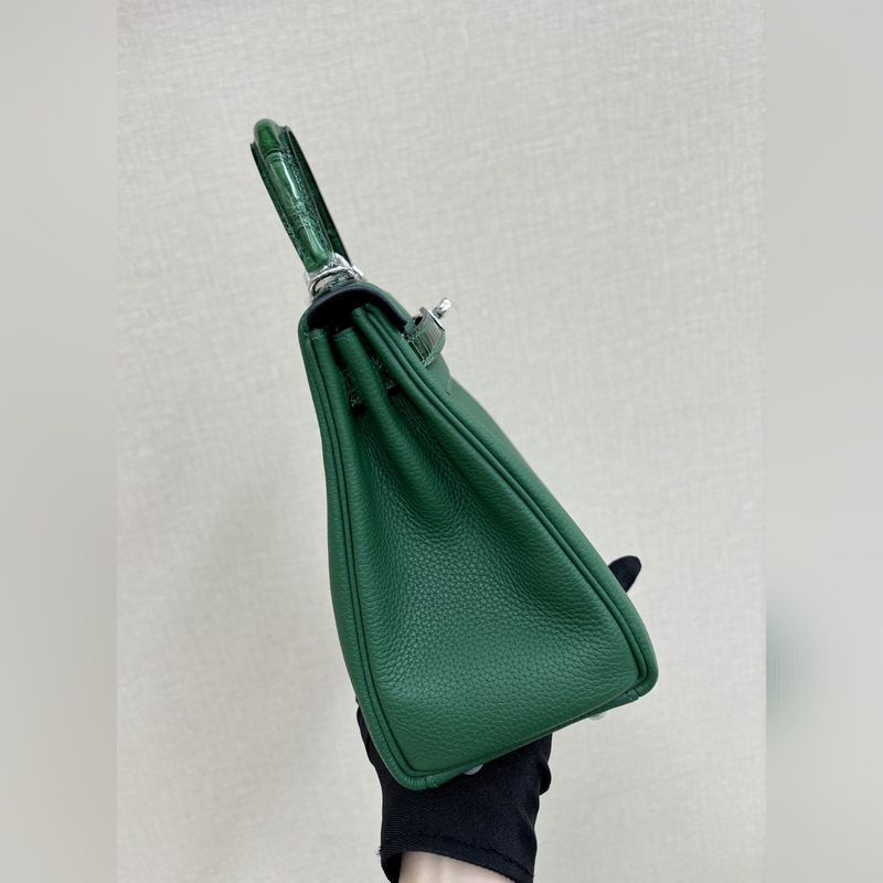 켈리 터치 25cm 악어 가죽에 반짝이는 토고 가죽 에메랄드 그린 수