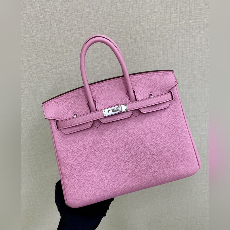 재고 있음 Birkin25 토고 가죽 벚꽃 핑크 수작업 왁스 처리 리넨