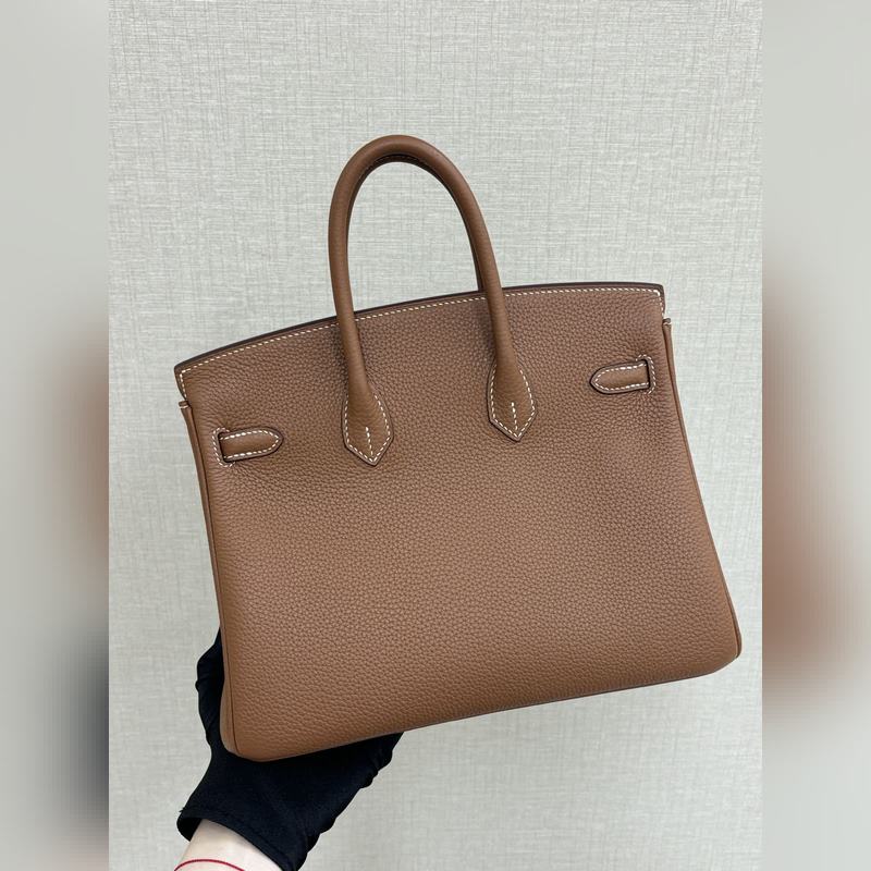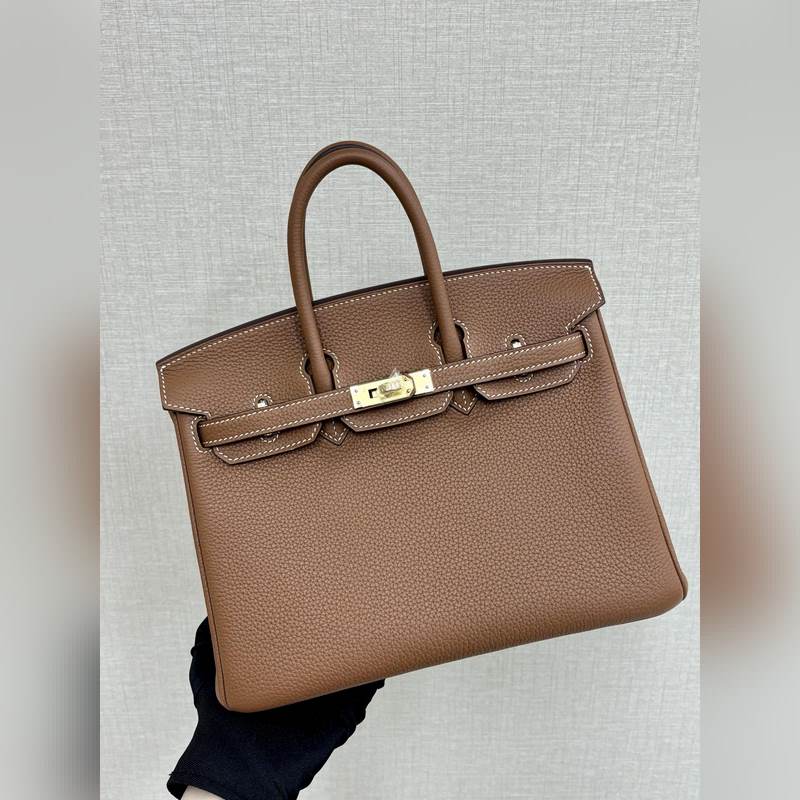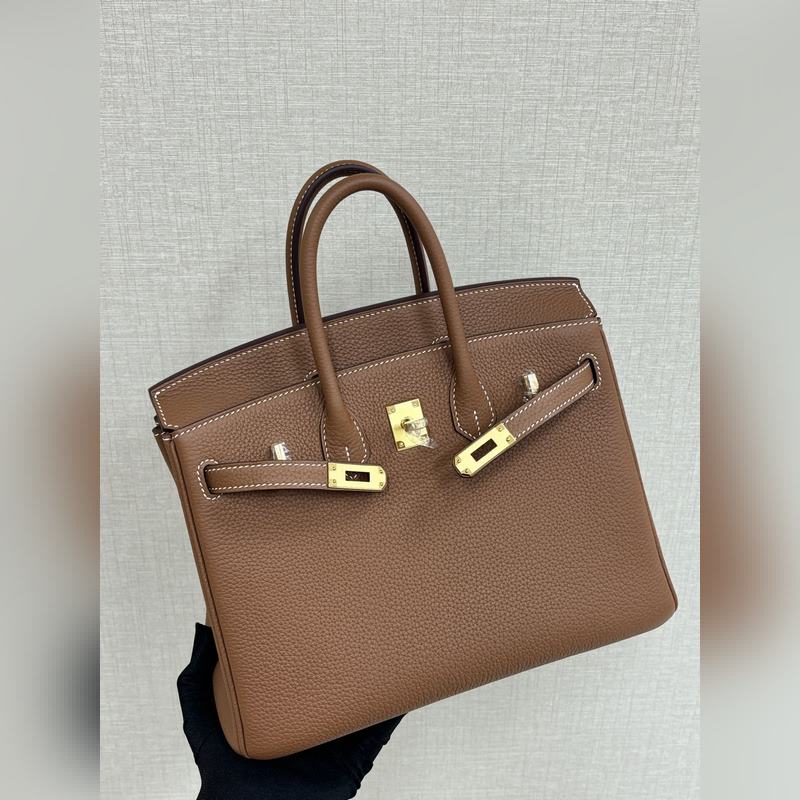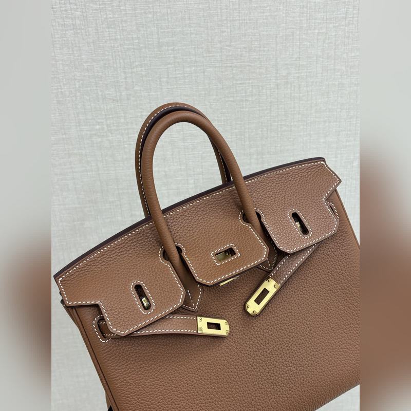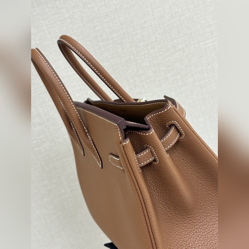 재고 있음 버킨25 토고 가죽 골든 브라운 수작업으로 왁스 처리한 리넨