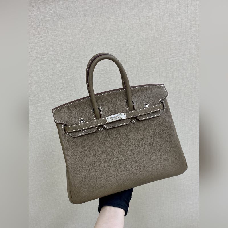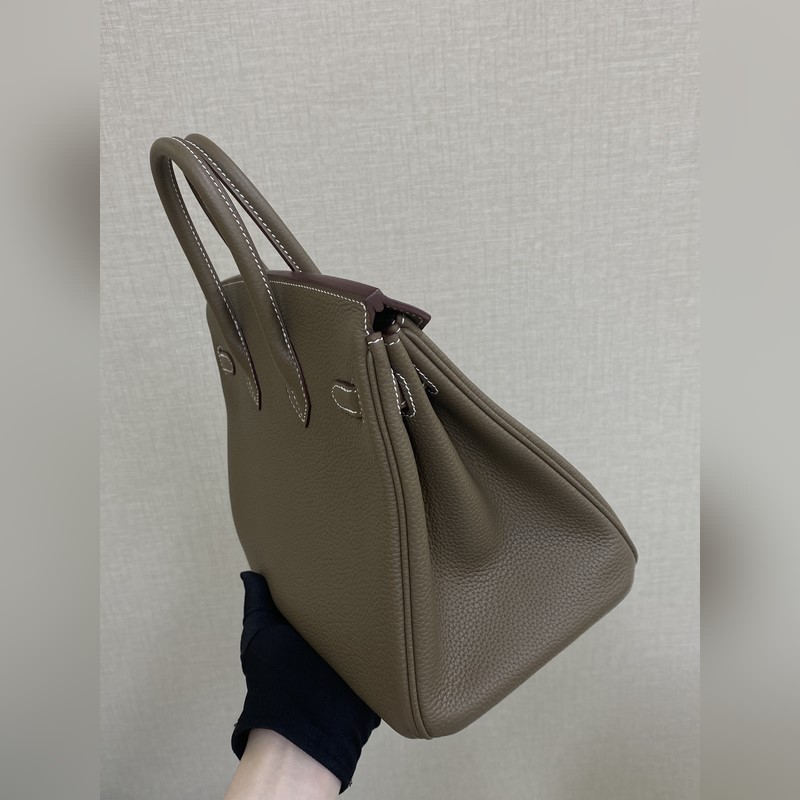 재고 있음 버킨25 토고 가죽 엘리펀트 그레이 수작업 왁스 처리 리넨 가