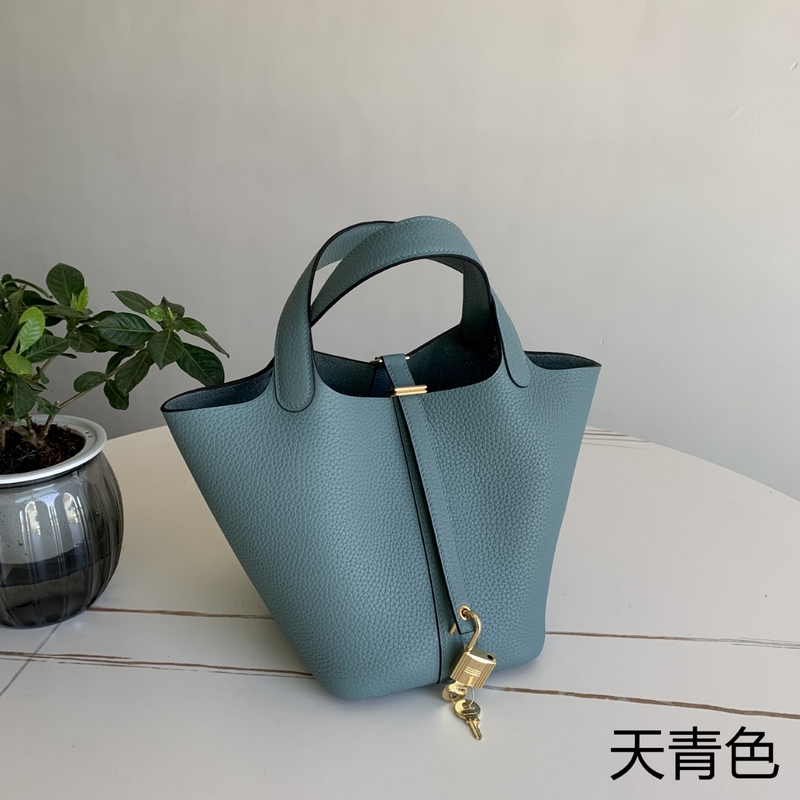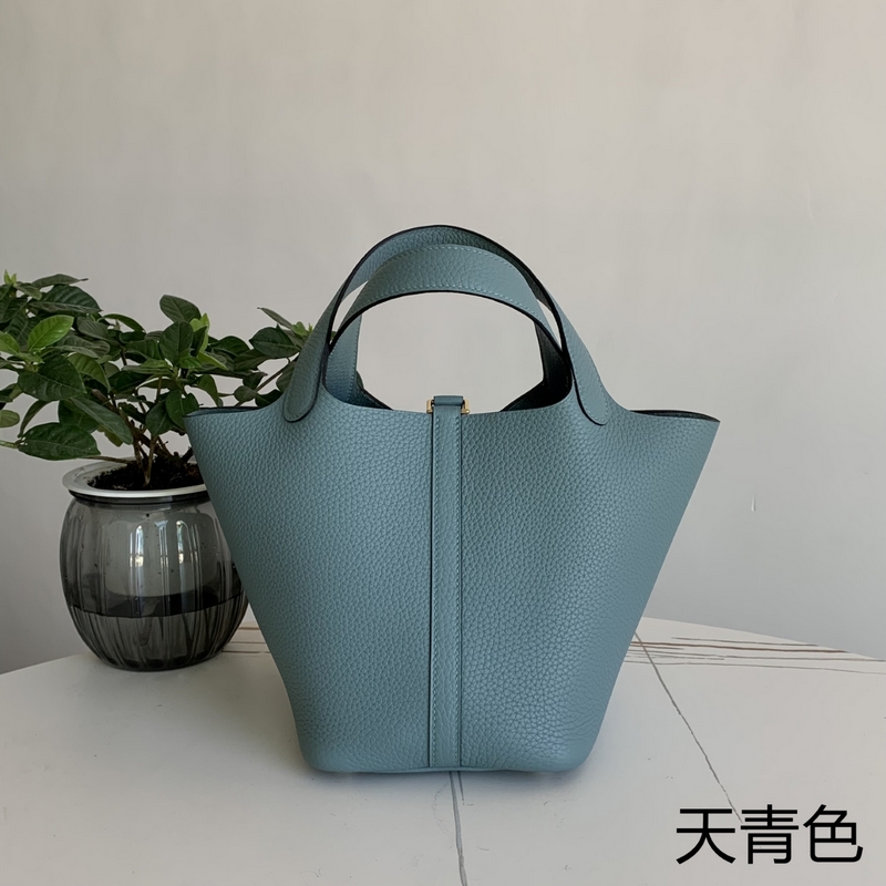 피코틴 야채 바구니 하늘색과 금색 버클 18cm 수입 TC 송아지 가