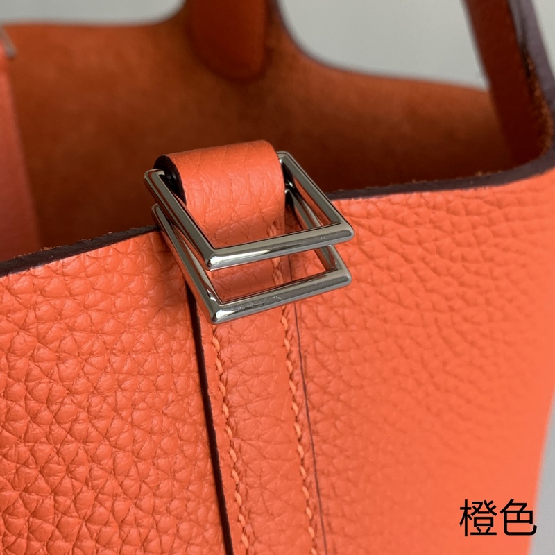 쇼핑 바구니: 18cm 오렌지색 실버 버클 수입 TC 송아지 가죽