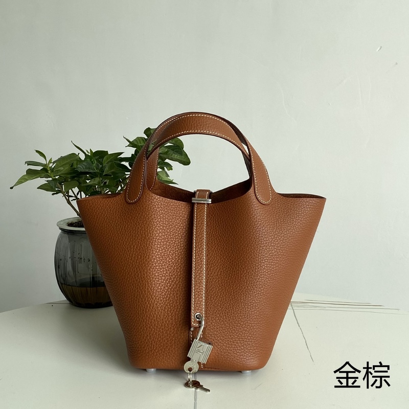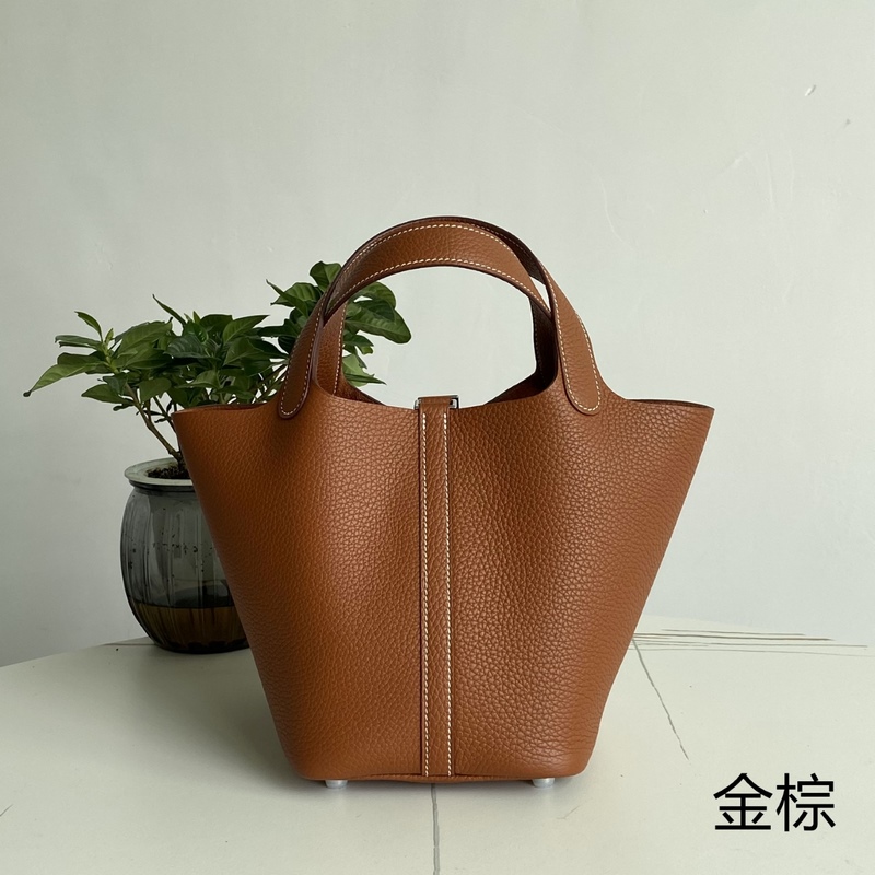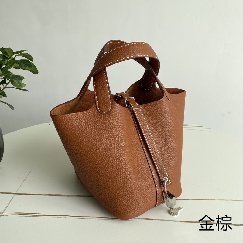 피코틴 야채 바구니 금색과 은색 단추 18cm 수입 TC 송아지 가죽