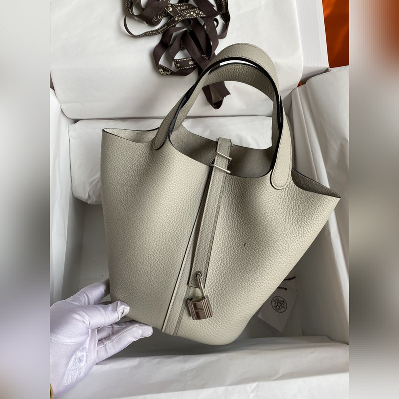 피코틴 쇼핑 바구니...18cm 수입 TC 가죽 진회색 금색과 은색 톤의