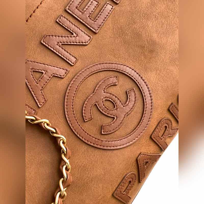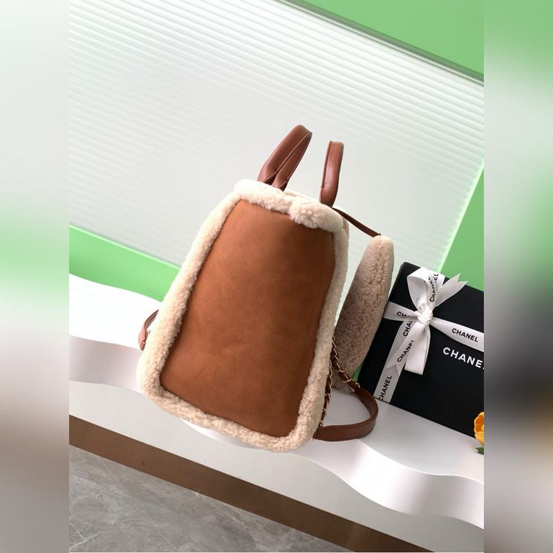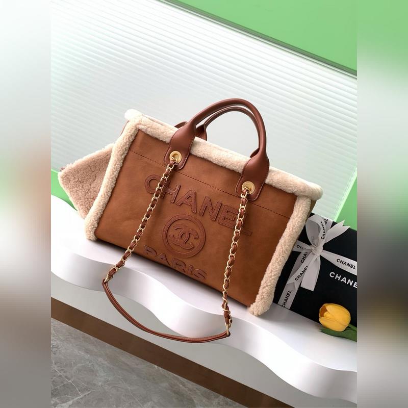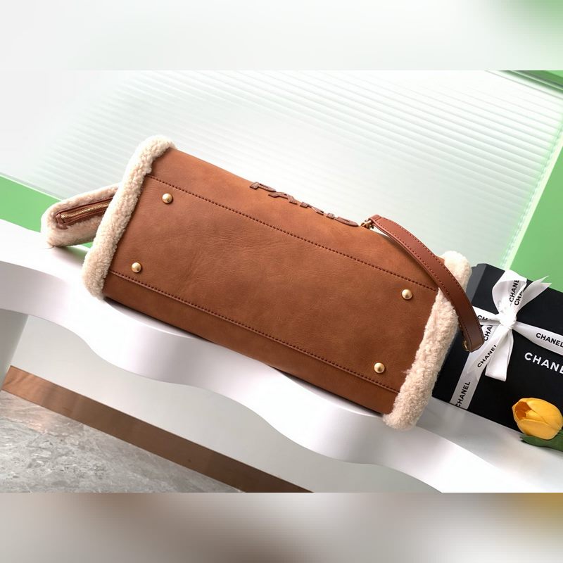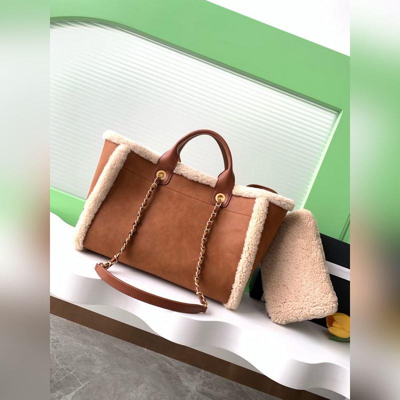 샤넬 24k 쇼 모델 갈색 모피 비치 백 털이 있는 사슴 가죽 가을