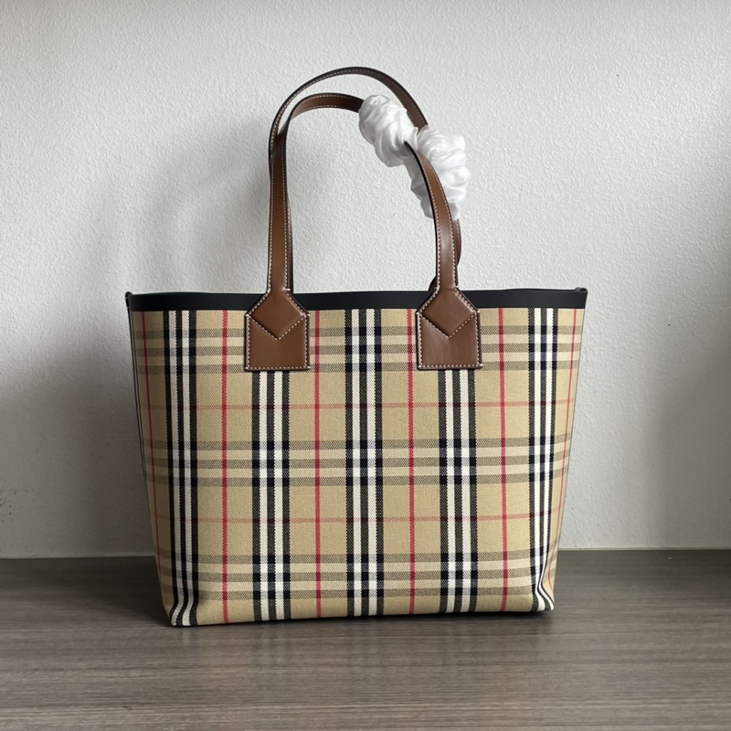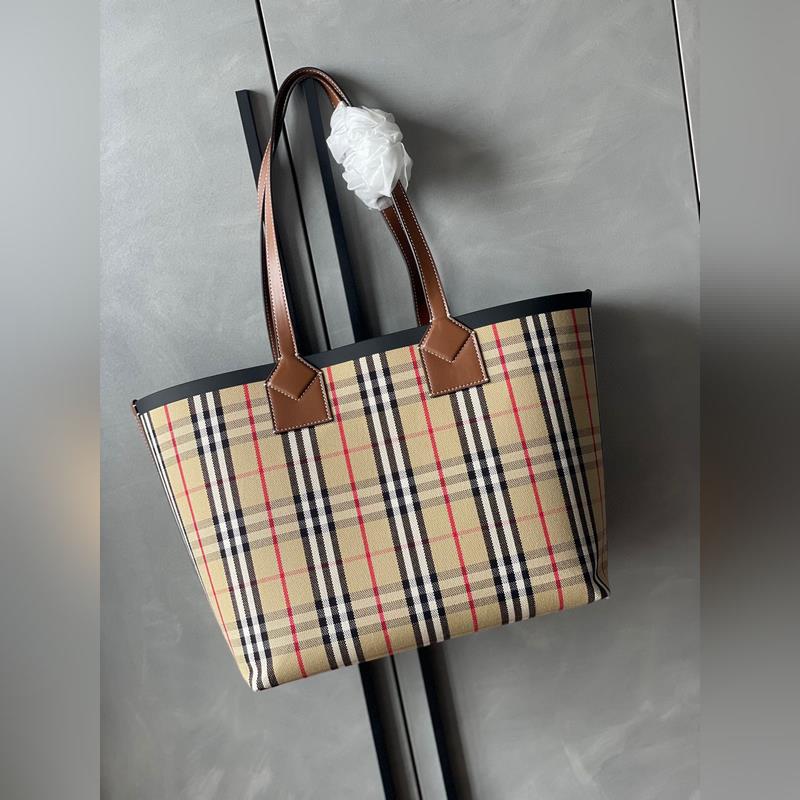 버버리 쇼핑백 넉넉한 사이즈의 모델 면 캔버스 소재에 자카드 직조 버