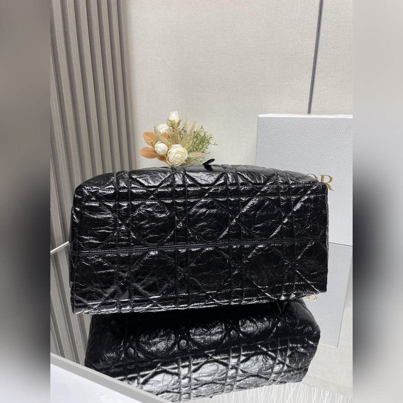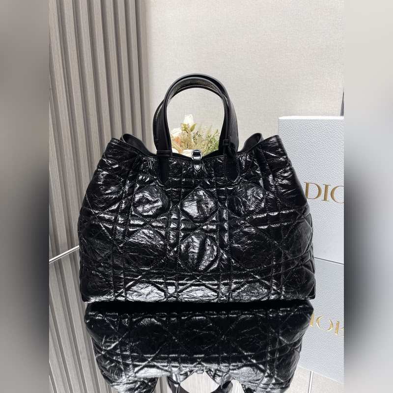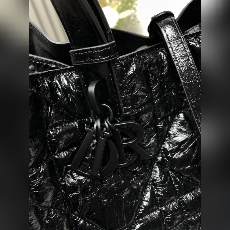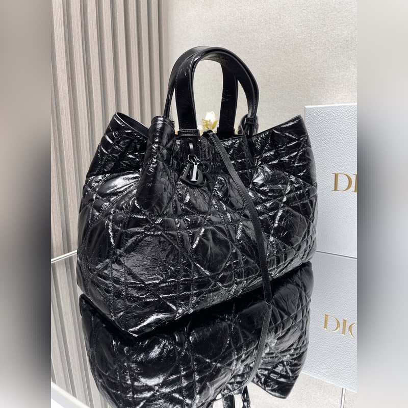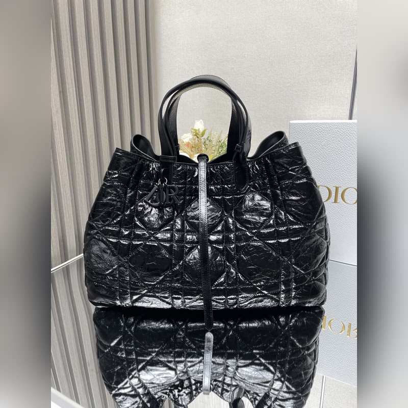 진짜 높은 버전 DIOR TOUJOURS 핸드백 [대형 블랙 왁스 가죽