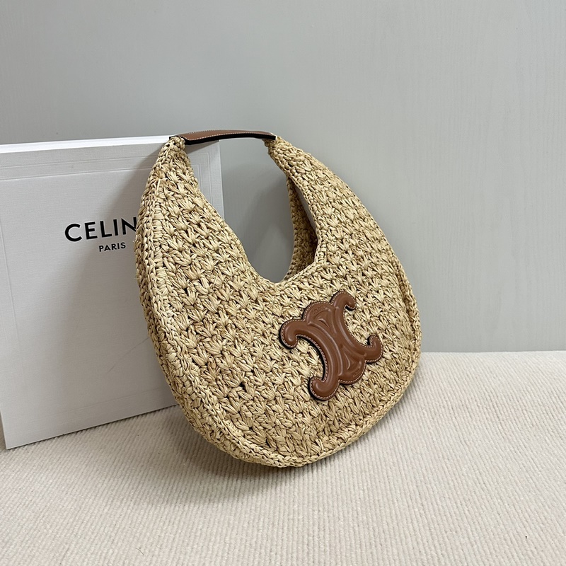 정통 신제품 온라인 CE 호보 스트로 숄더백 식물 소재와 소가죽으로 만