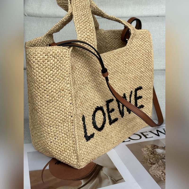 순정 가죽 신품 미디엄 라피아 LOEWE 폰트 토트백 30-20-15