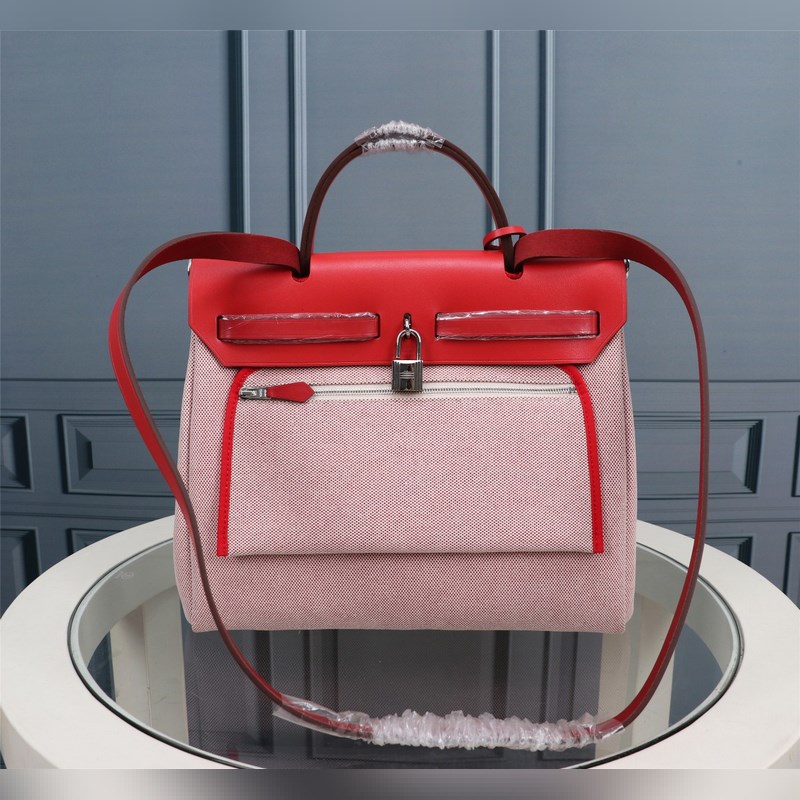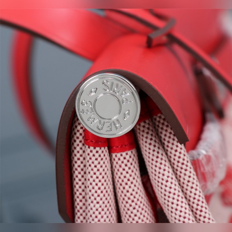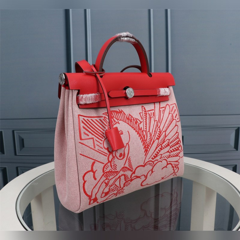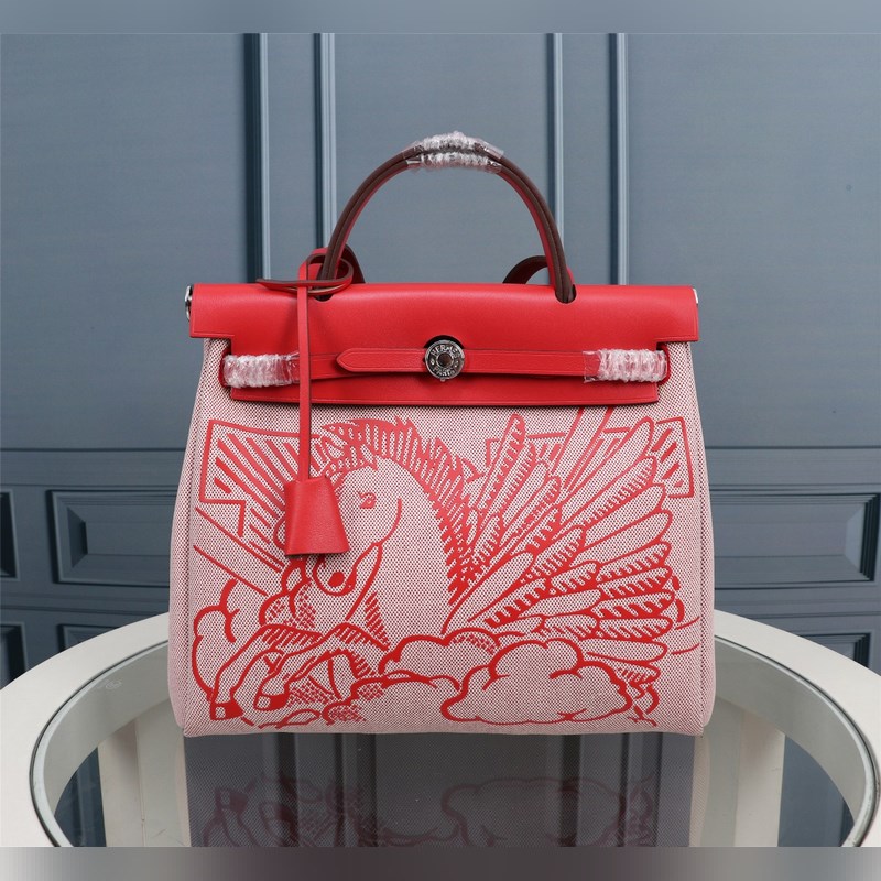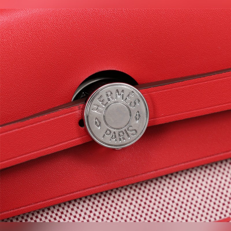 (내부 스티칭이 있는 빨간색 말) 에르메스 헤르다그 수입 방수 캔버스 시