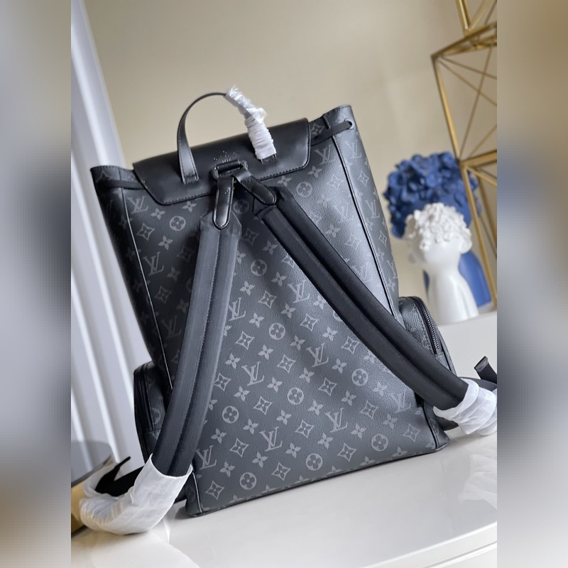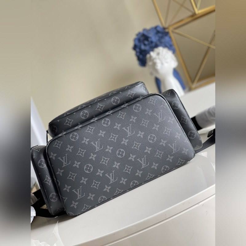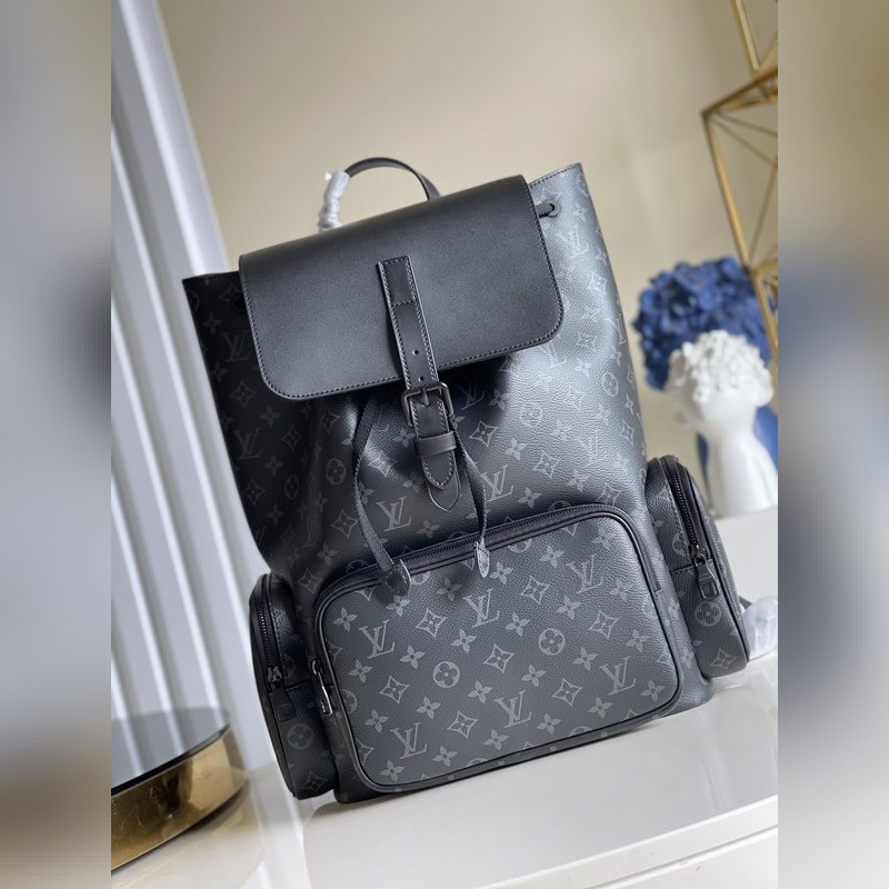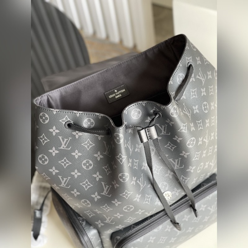 LV 모델 M45538 TRIO 배낭 배낭은 모노그램 캔버스에 소가죽 플랩이 달려 있습니다. 앞주머니에 달린 금색 체인과 같은 현대적인 디테일이 과거와 현재를 연결하는 역할을 합니다. 지퍼가 달린 앞주머니 3개와 사이드 포켓은 실용적인 면을 고려한 것으로 노트북을 쉽게 넣을 수 있습니다. [이 가방은 포장에 들어가지 않을 정도로 너무 큽니다] 크기 60x72x19cm