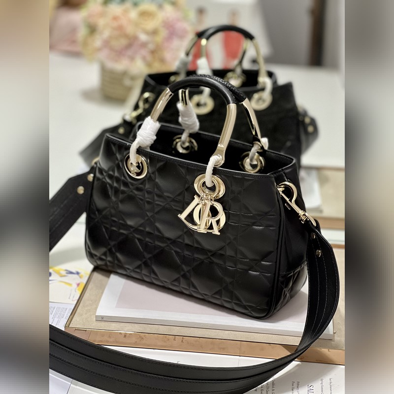 LADY 95.22 가방(검은색 대형 가방 금색 잠금장치)은 LADY